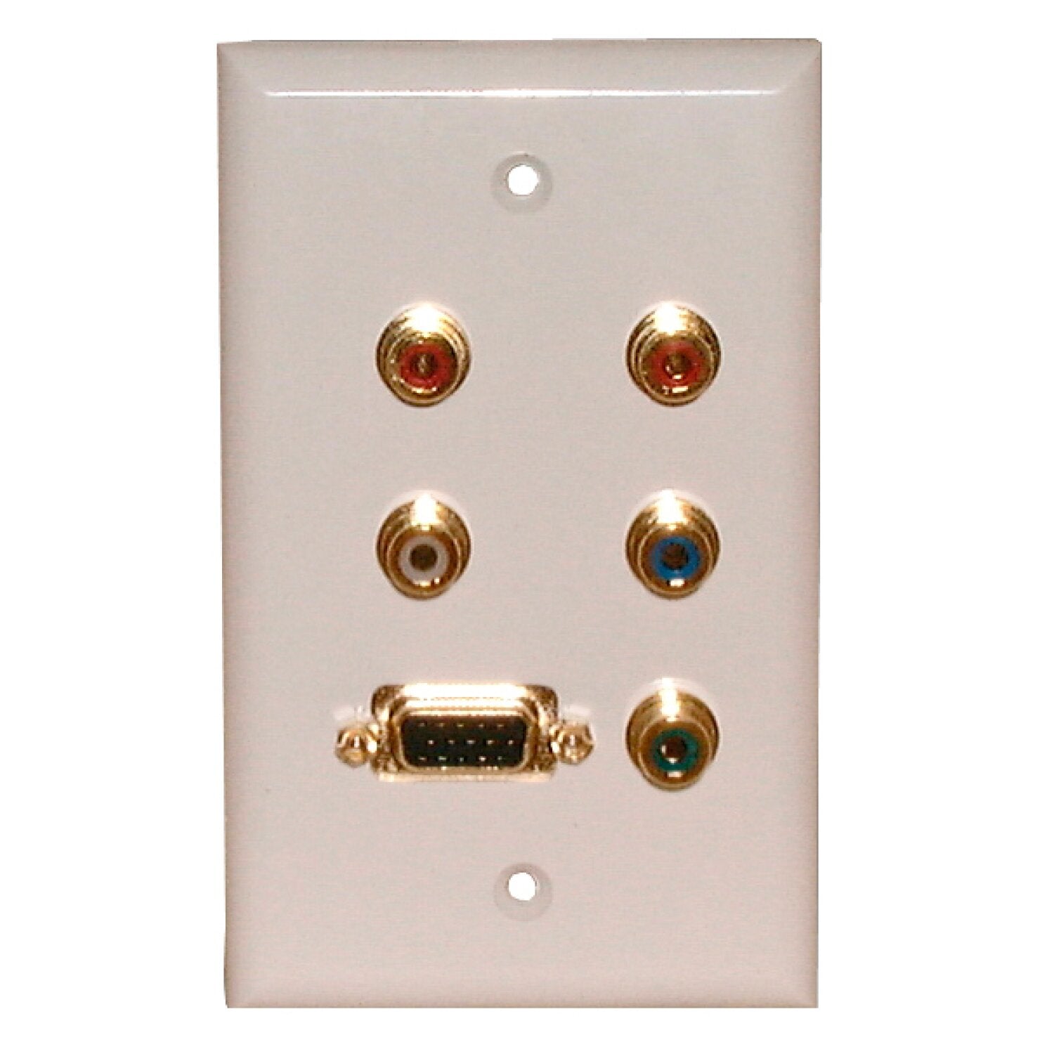 • VGA + component video (3) RCA (red,blue,green) + audio (2) RCA (red,white)