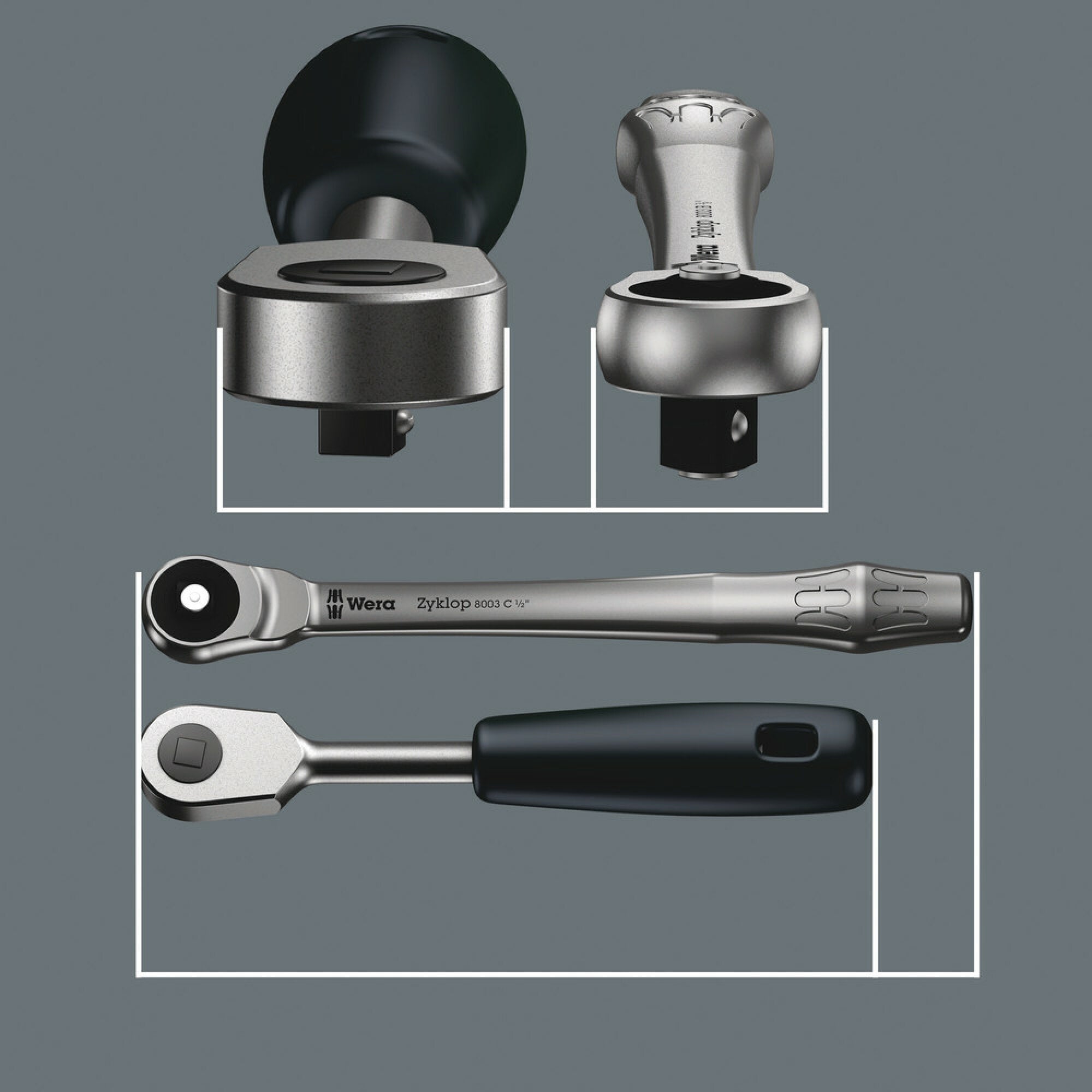 Wera 8100 SC 10 Zyklop Metal Ratchet Set with push-through square, 1/2" drive, imperial, 28 pieces