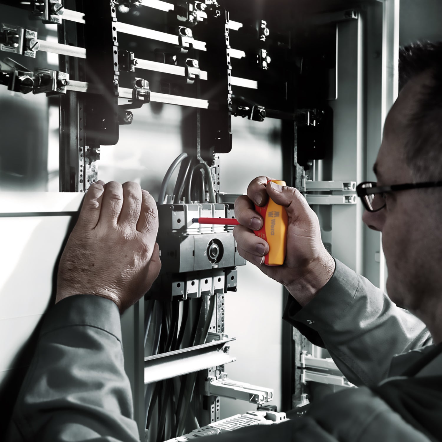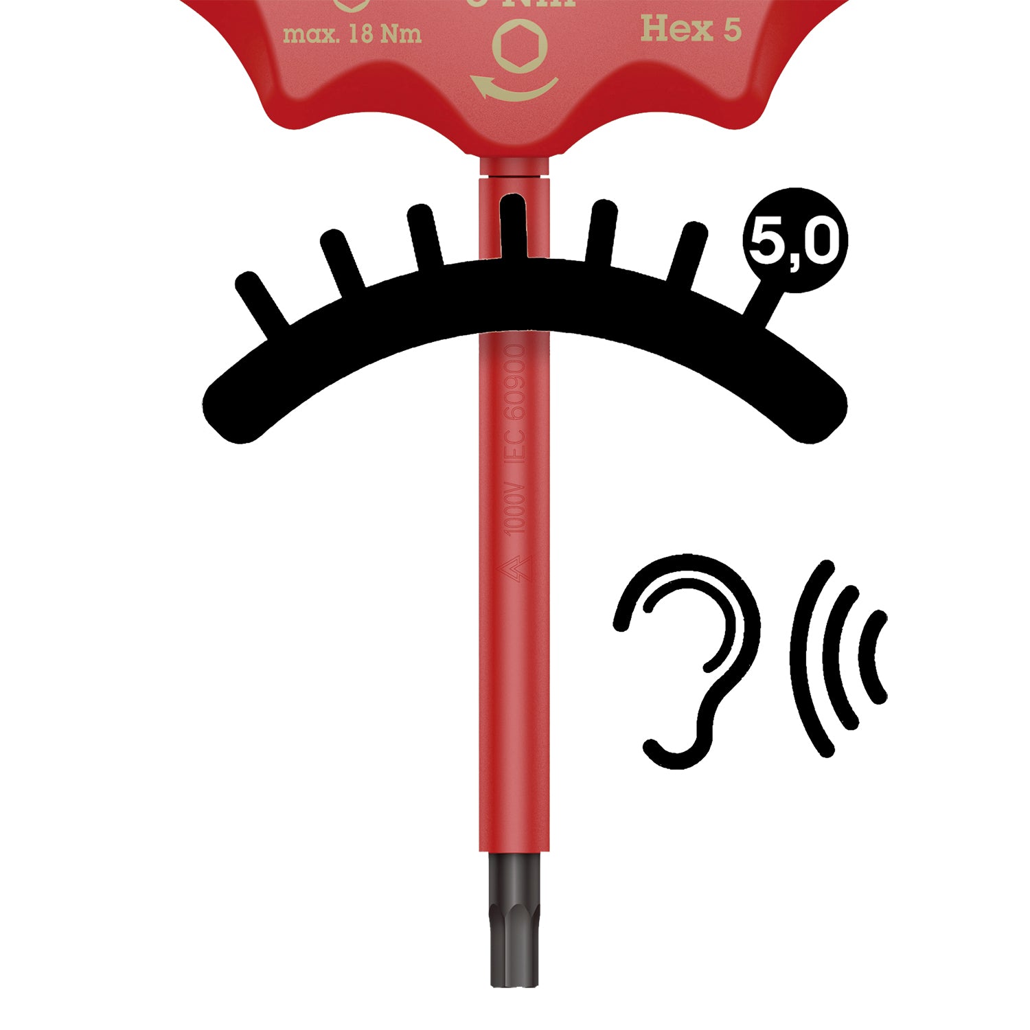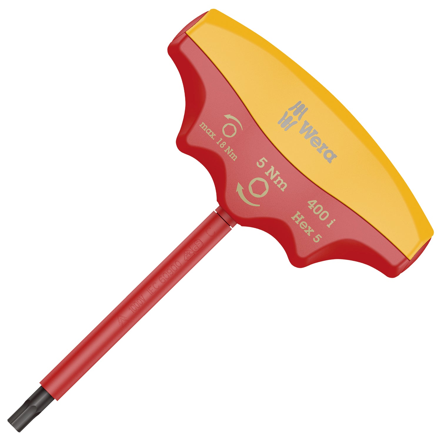 - Insulated, individually tested VDE T-handle torque indicator for safe working up to 1,000V