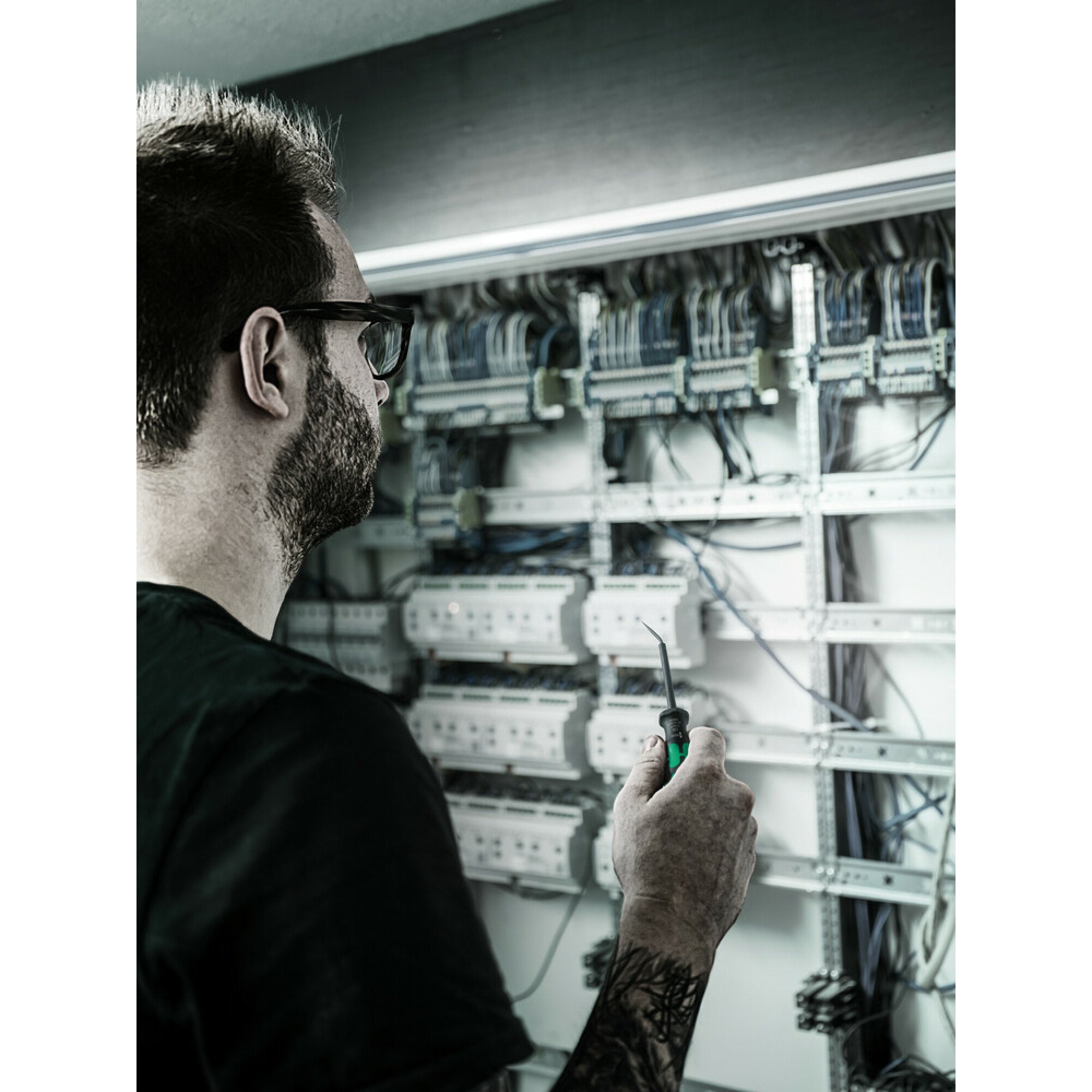 Useful actuation tool for spring terminals. The curved blade also makes it easy to operate spring terminals in distribution boxes which cannot be reached with a straight blade. The blade stays in the terminal block, leaving both hands free to insert the wire. Multi-component Kraftform handle for fast and smooth work.