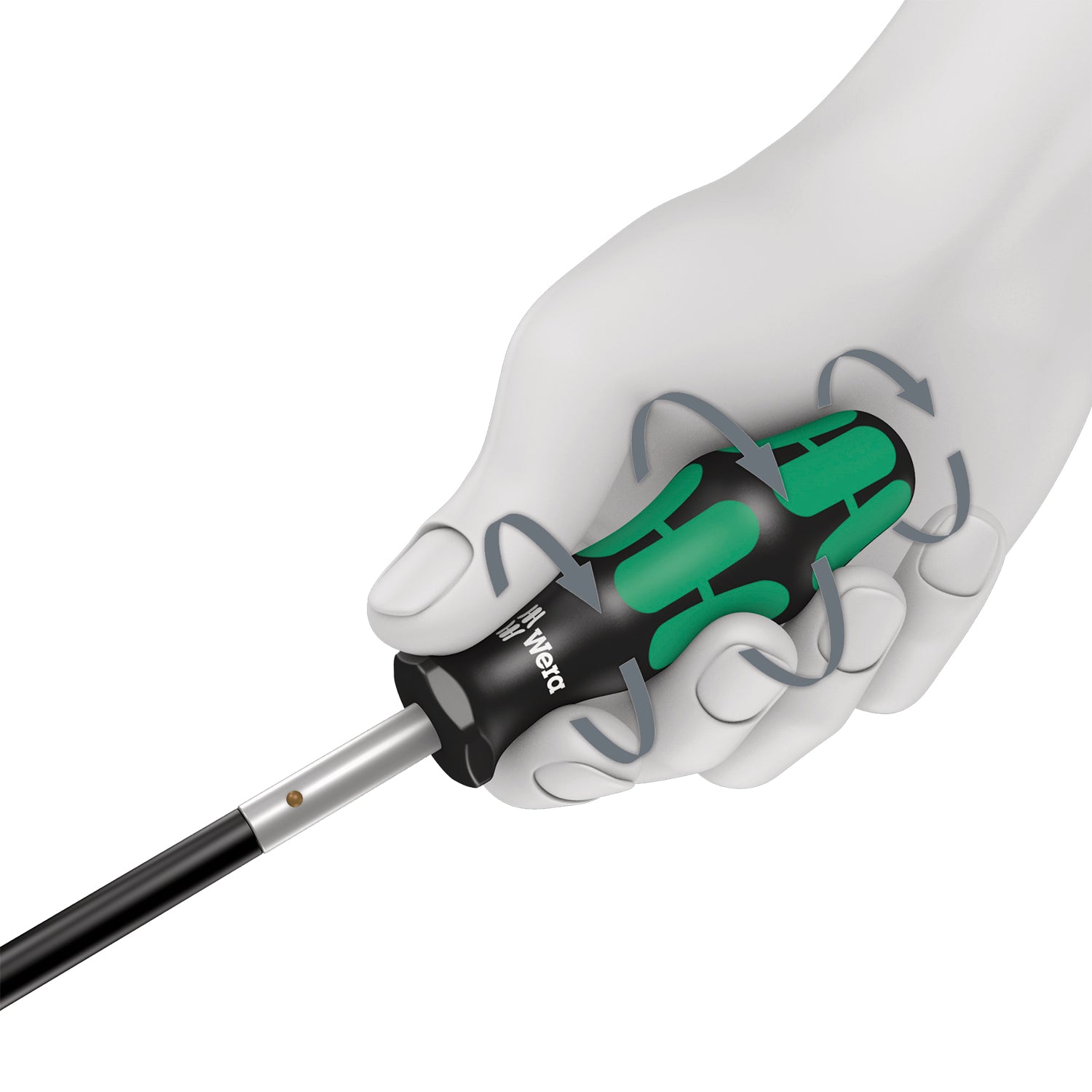 High quality hose clamp screwdriver by Wera. Multi-component Kraftform handle for high working speeds and particularly ergonomic screwdriving. Kraftform Plus: hard gripping zones for high working speeds whereas soft zones ensure high torque transfer. Flexible blade for reaching difficult-to-access places. Hexagonal anti-roll feature prevents any rolling away and handle markings make for simplified finding and sorting of the tool.