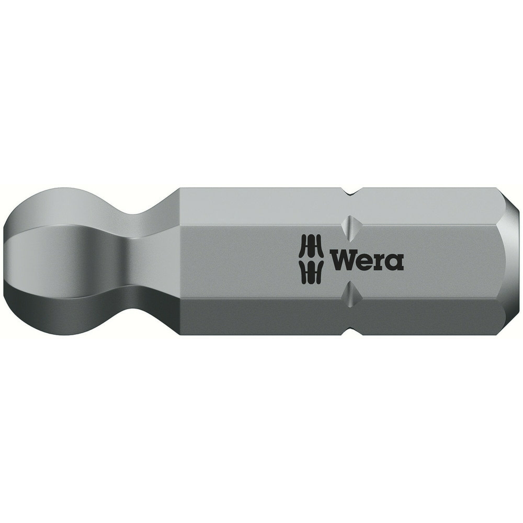 Tough viscous Wera bits for hexagon socket screws and universal use. The ballpoint drive profile means that it is possible to swivel the tool axis away from the screwdriving axis, thus enabling "round the corner" screwdriving. ¼" hexagon, suitable for holders as per DIN ISO 1173-D 6.3.