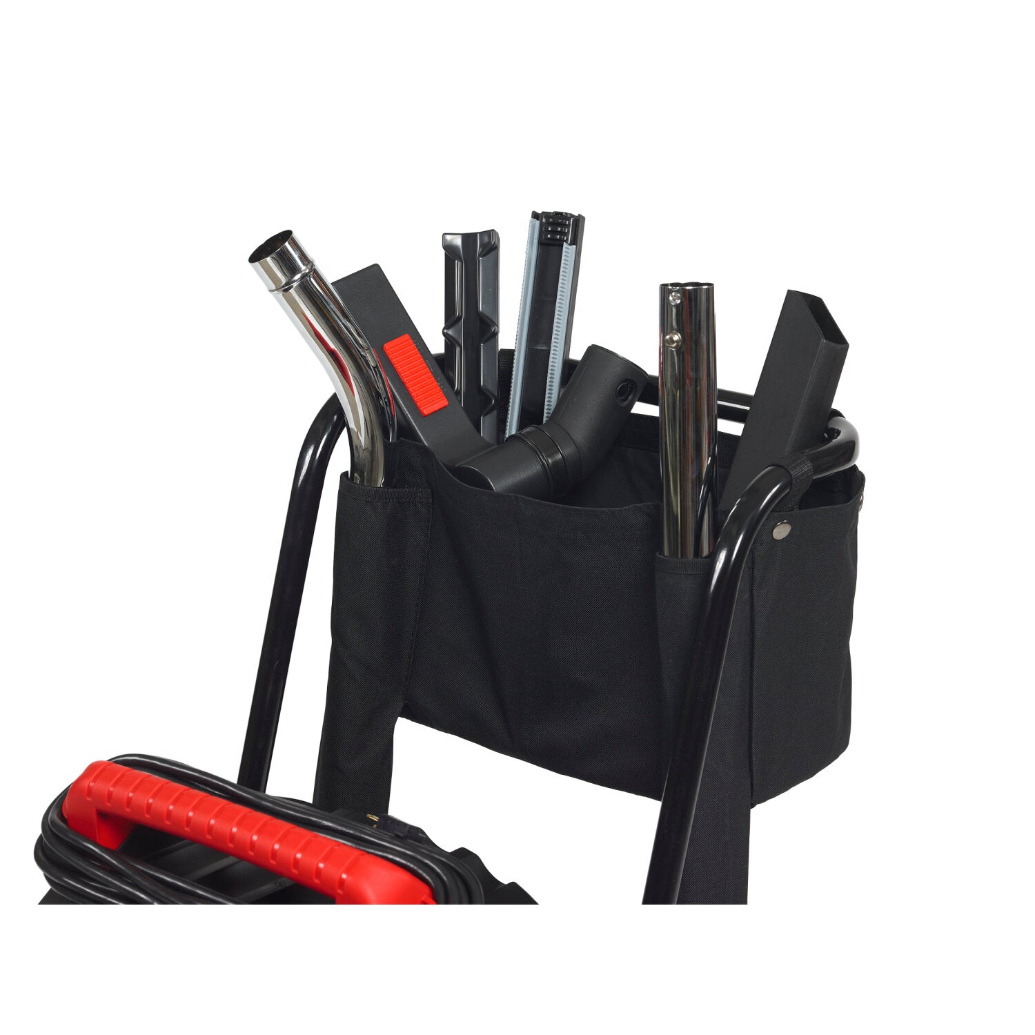 - Includes: 10-foot hose, 6 cleaning tools, 2 steel extension wands, on-board accessory holder & filter.
