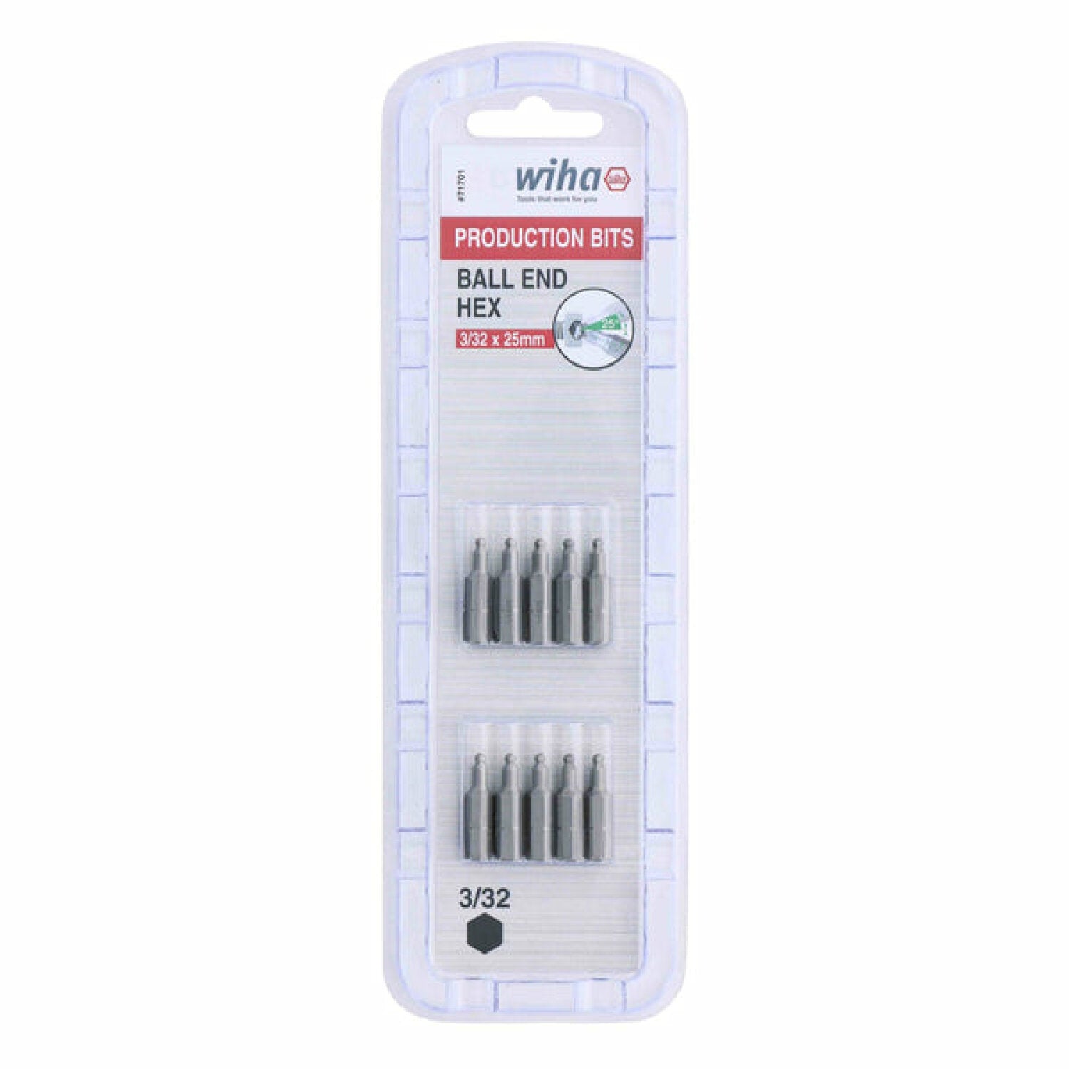 Wiha Tools 71701 3/32" x 38mm Ball End Hex Insert Bit, 10 Pack
