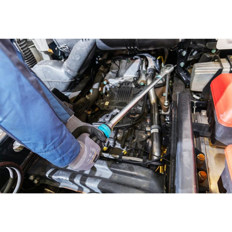 - Thanks to the possibility of using 12.5 mm (1⁄2″) sockets/extensions, torque-controlled screw connections of 100 to 400 Nm can now also be operated in all manual and industrial production areas, e.g. with threads of M12 to M16 (property class 12.9) or M16 to M24 (property class 5.6) with restricted access, e.g. for flange or machine screw connections