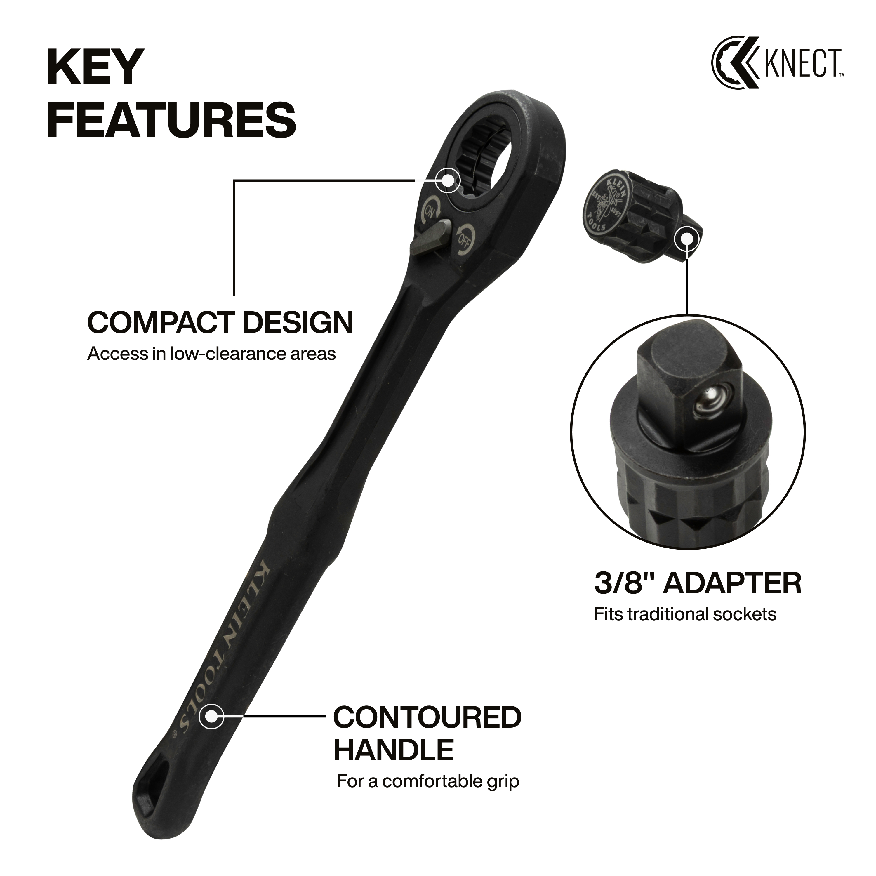 Klein Tools 65408ADP KNECT (M) Pass Through Ratchet and 3/8" Drive Socket Adapter Set