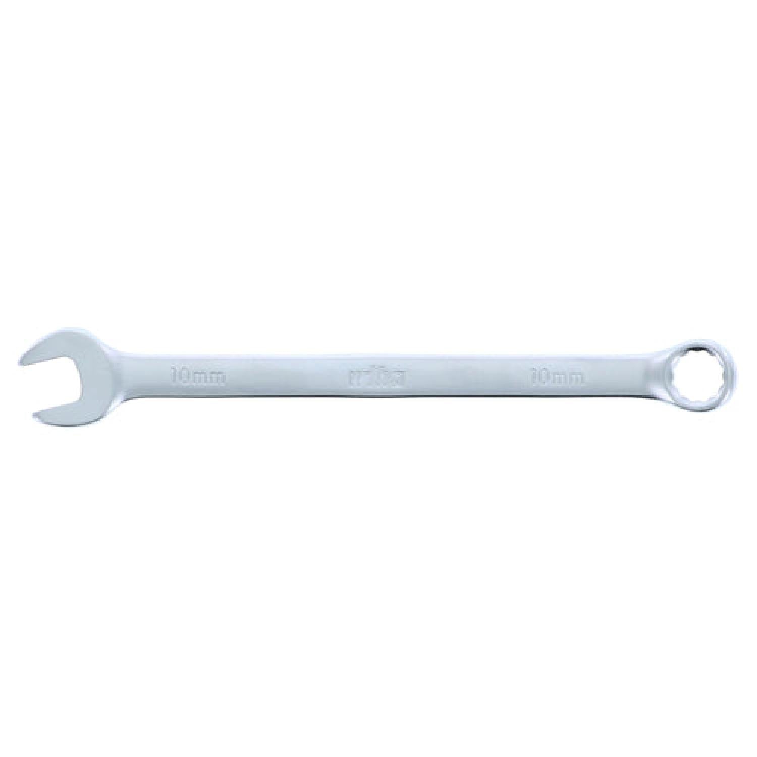 Wiha's Combination Wrenches feature a 12-point box-end design doubles access-angles of a 6-point opening. The point-contacts apply force to the flat sides of the fastener head—rather than the corners—to prevent the fastener head from rounding off. The open-end is angled 15 degrees for flipping the wrench between rotations to maximize rotations and the box-end offset 15 degrees for finger clearance and working around obstructions that limit access to the fastener. The wrenches consist of premium-quality tool steel, have a Chrome-plated satin finish for corrosion protection, and the size profiles are boldly stamped on the handle for easy identification.  Wiha Combination Wrench is backed by the Wiha No Hassle Guarantee.