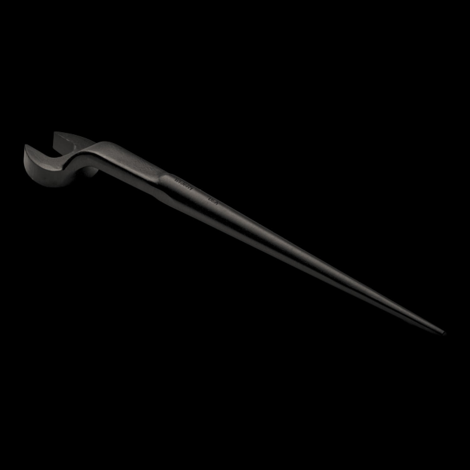 - Special purpose single end wrench with 15° angled slotted opening at one end and long tapered (rat tail) handle for extra leverage and hole aligning.