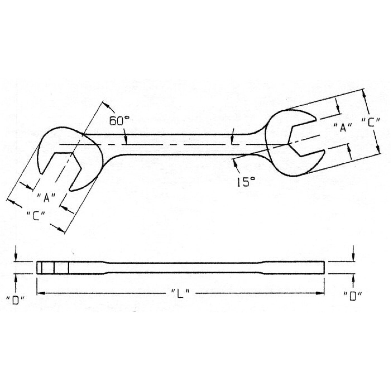 Wright Tool 1366 Open End Double Angle Wrench 15⁰ & 60⁰ Satin - 1/2" x 1/2"