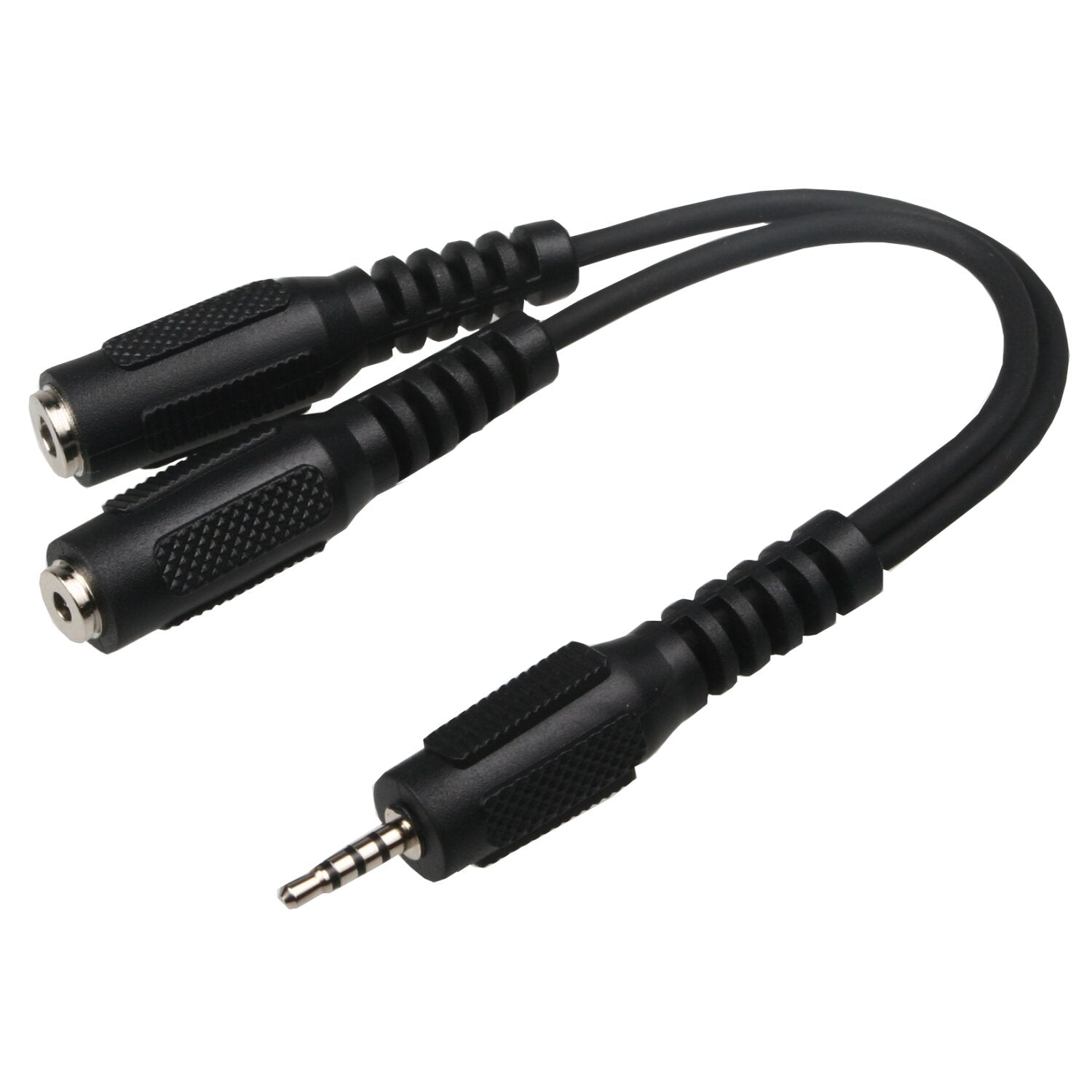 - 2.5mm 4 conductor male to (1) 2.5mm 4 conductor female & (1) 3.5mm 4 conductor female