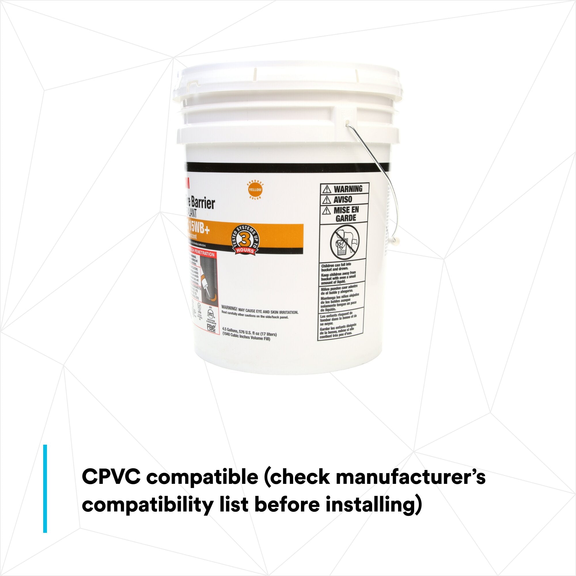 3M Fire Barrier Sealant IC 15WB+, Yellow, 4.5 Gallon (Pail)