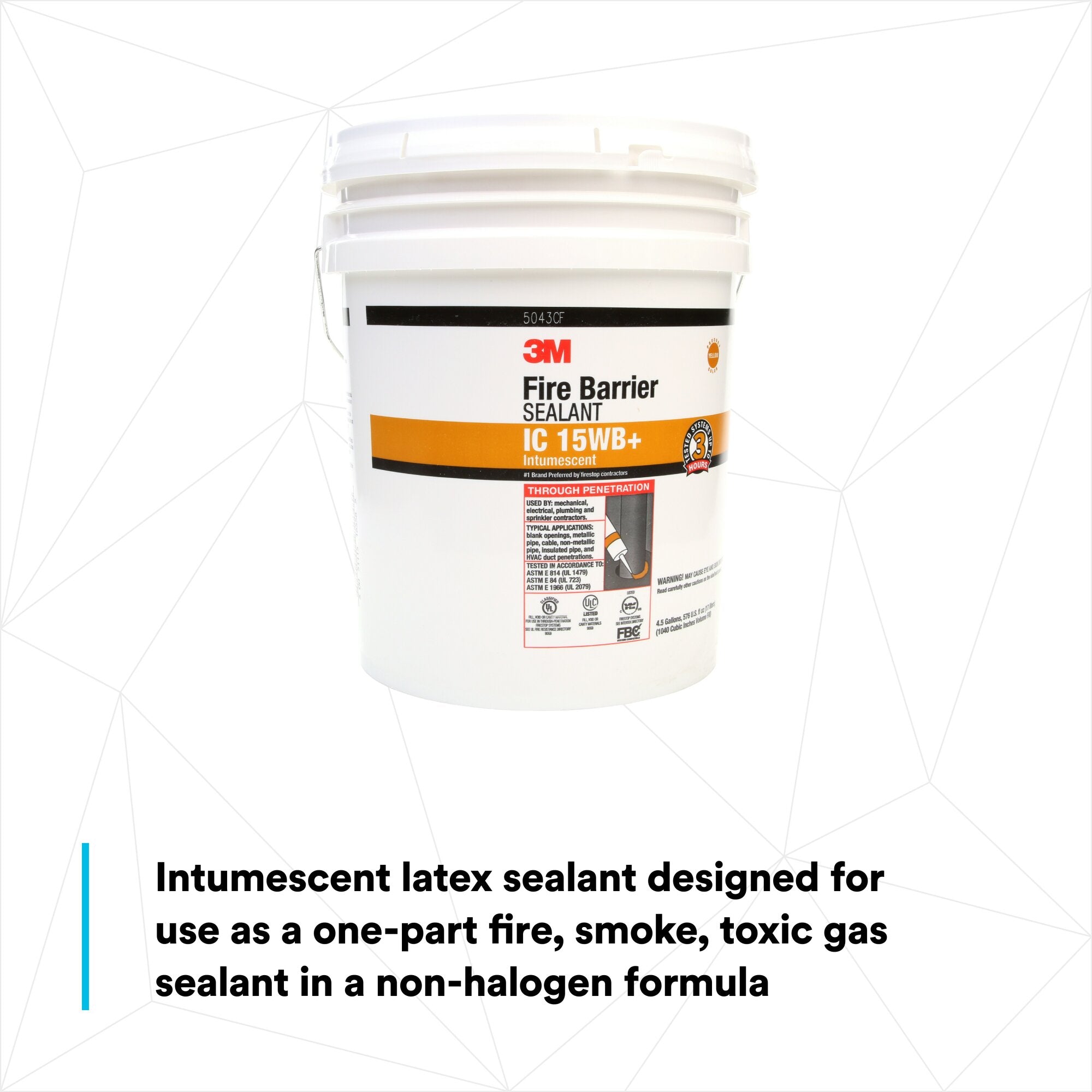 Engineered to form a monolithic seal after drying, 3M Fire Barrier Sealant IC 15WB+ is a yellow, one-part, gun-grade, intumescent firestop sealant that provides up to 3-hour fire protection in tested and listed systems. This helps prevent the spread of fire, smoke and noxious gas, while also acting as an acoustic barrier to help minimize noise transfer.Establish a Strong Firestop Barrier