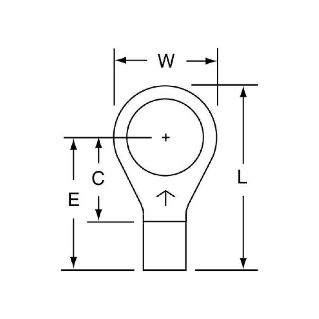This terminal has a wire range of 8 AWG and a stud size of 1/4. It comes in quantities of 25 per carton and 250 per case.A ring is the standard style of tongue. The safest and most reliable; it cannot be removed unless mounting screw is removed.