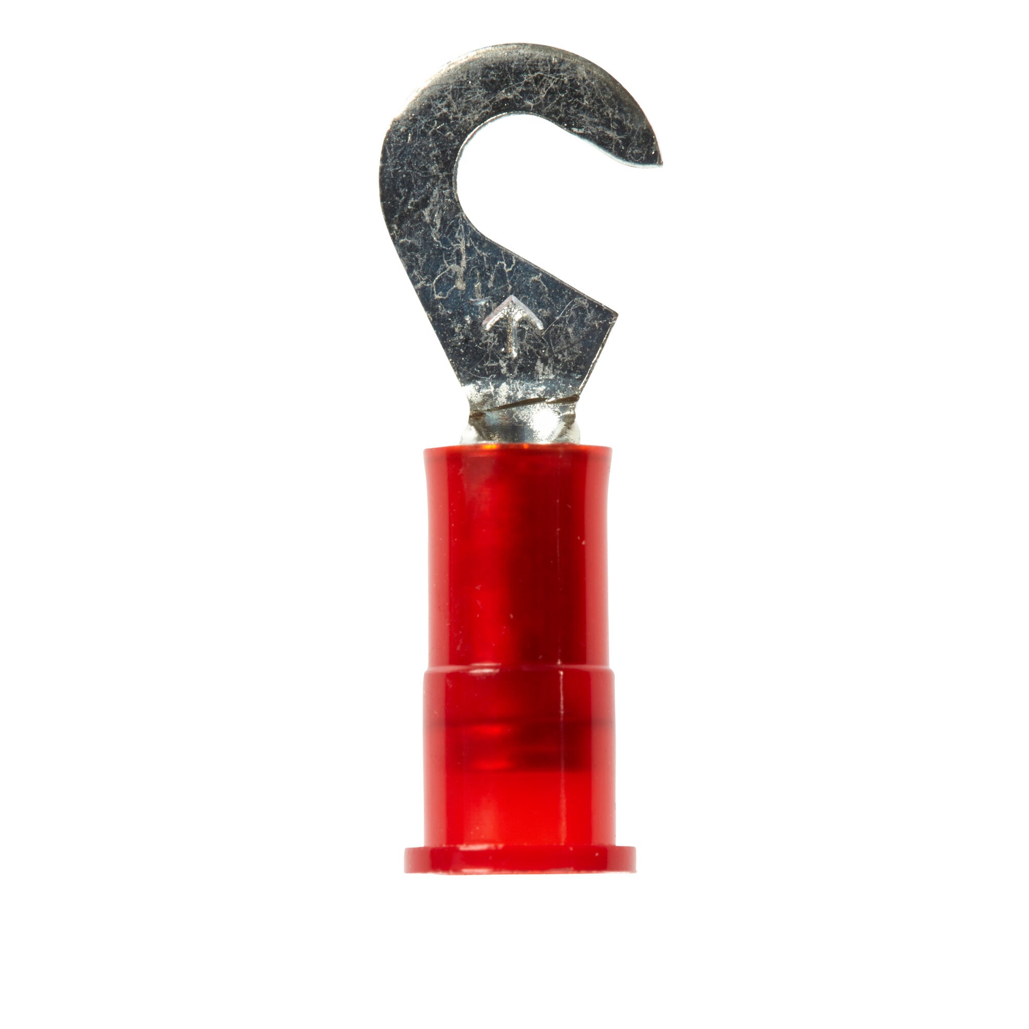 3M Hook Terminal allows terminal to wrap around a portion of a free-standing stud for a secure and reliable connection. The terminal has a nylon-insulated, butted-seam barrel and withstands temperatures of -40 to 221 degrees F (-40 to 105 degrees C). Electrolytic copper construction offers good conductivity and a tin-plated finish resists corrosion.3M™ Hook Terminal is color-coded for quick and easy identification of the wire size required. The funnel-designed, seamless brass sleeve guides the wire into position while providing electrical contacts and mechanical stress relief at the point of insulation. The abrasion-resistant, flared, nylon-sleeve insulation ensures positive grip and has a stepped design for mistake-proof crimping. UL Listed, CSA Certified and RoHS 2011/65/EU Compliant.