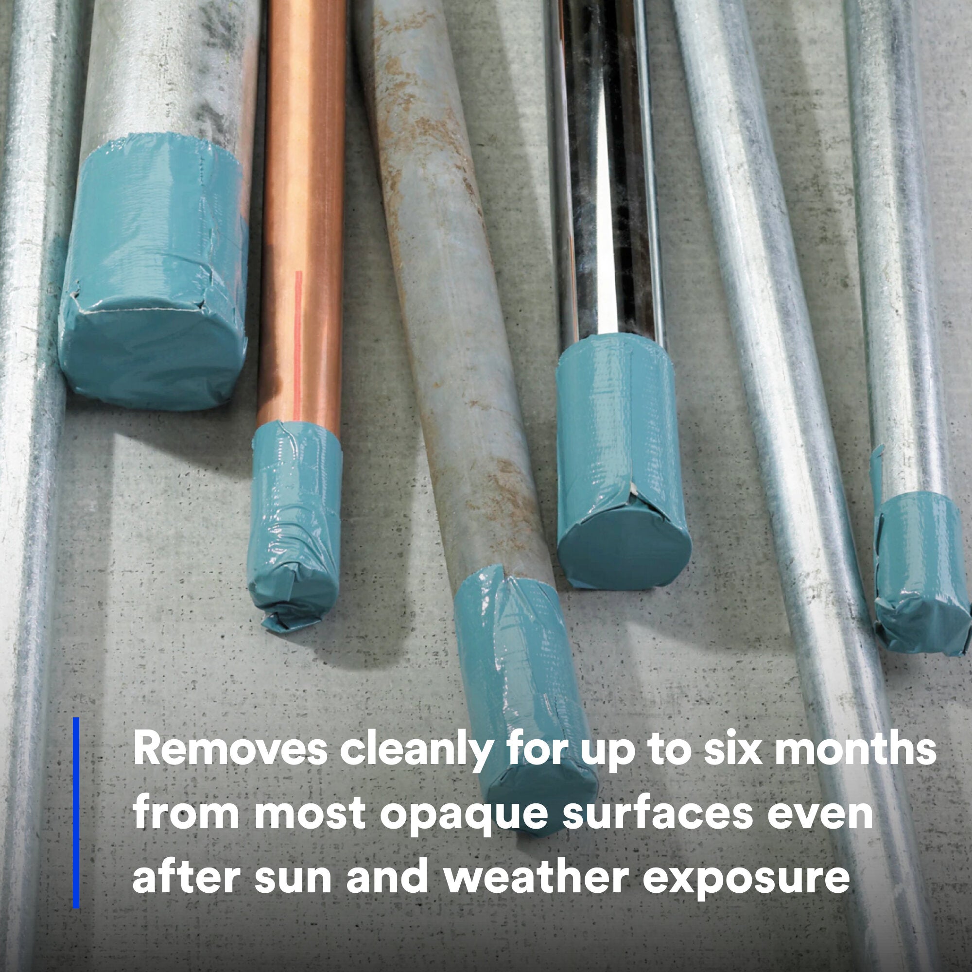 - Removes cleanly for up to six months from most opaque surfaces even after sun and weather exposure