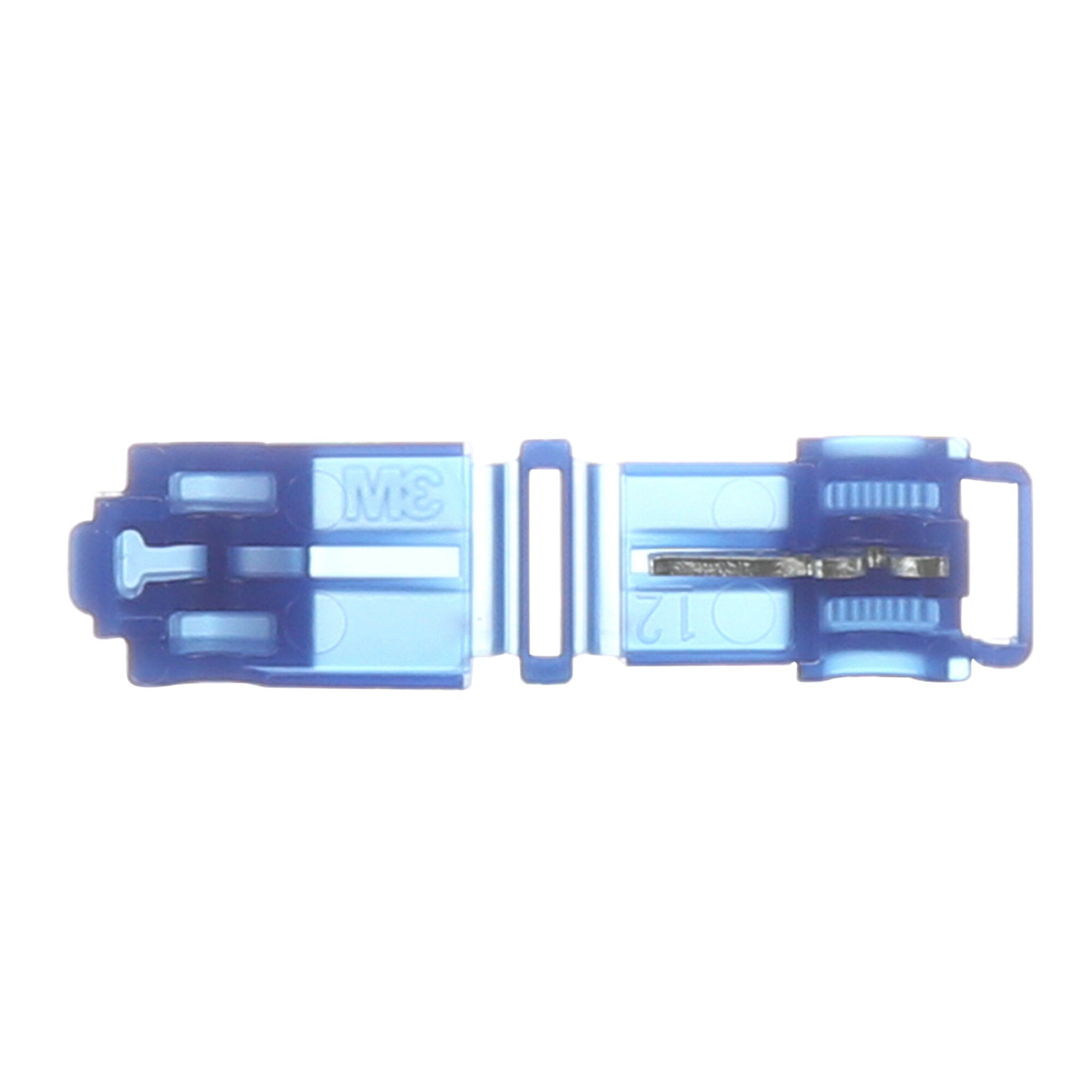 - Nylon-insulated connector electrically taps into a wire in mid-span without cutting