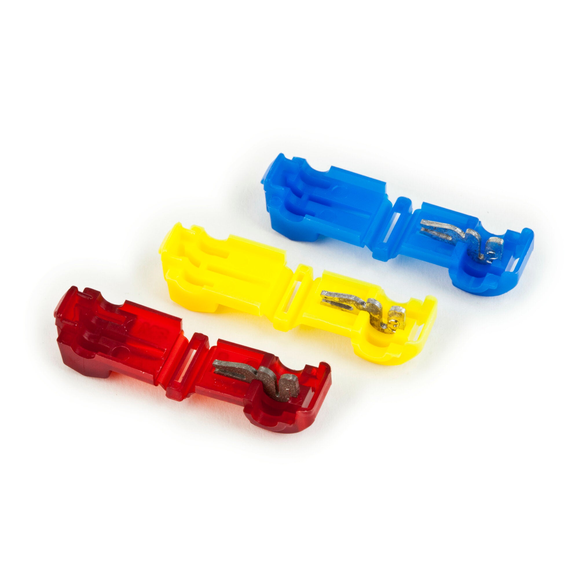 - Nylon-insulated connector electrically taps into a wire in mid-span without cutting