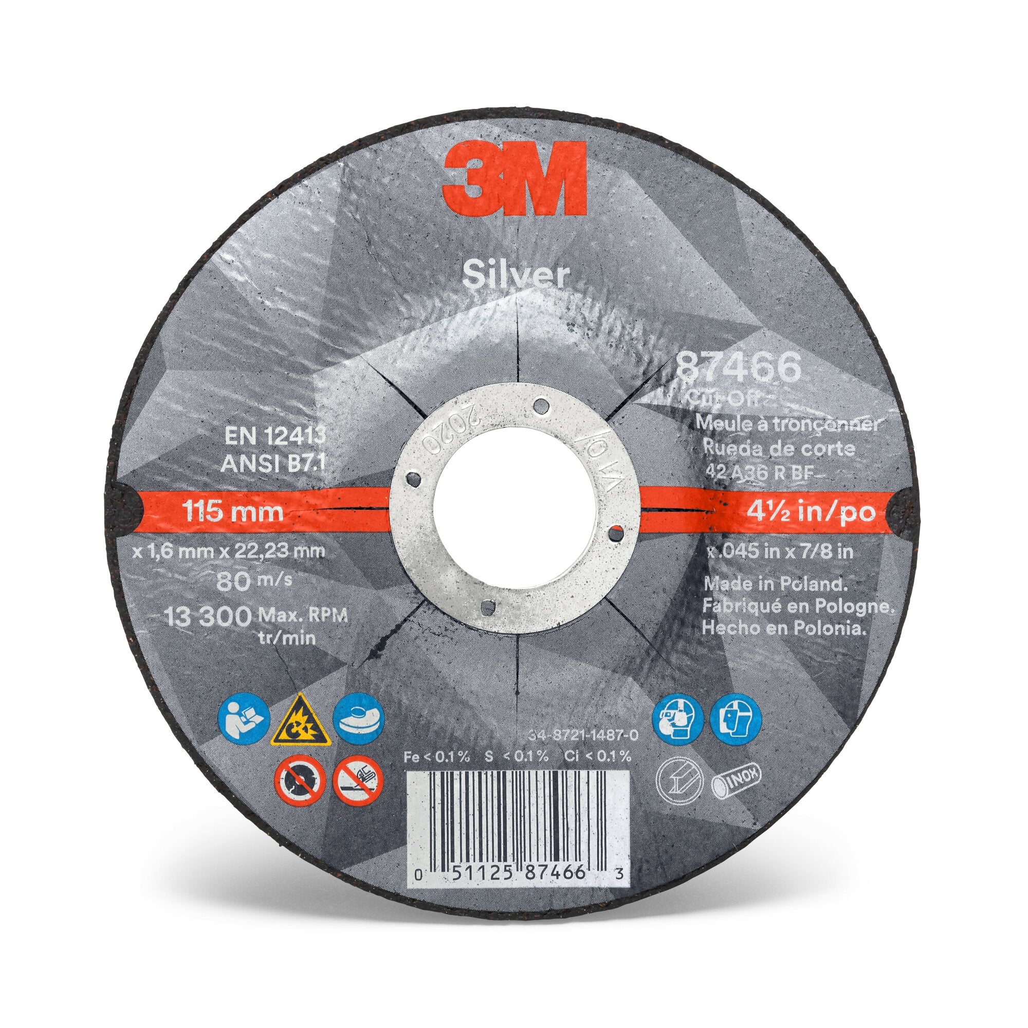 3M Silver Cut-Off Wheel, 87466, T27, 4.5 in x .045 in x 7/8 in