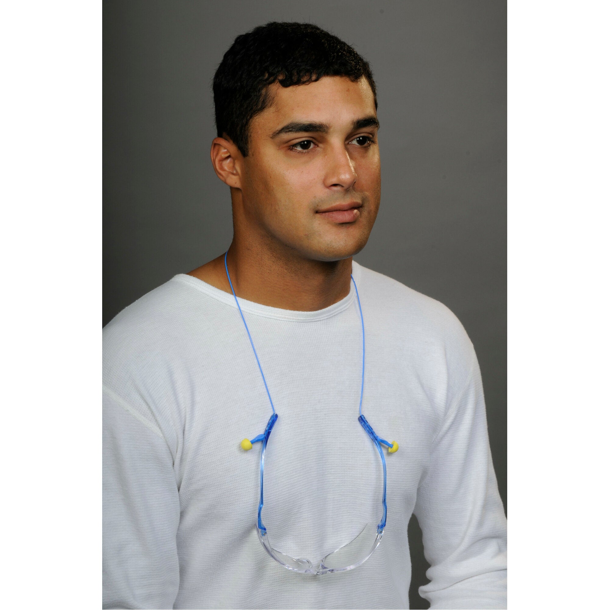 - CORDED EAR PLUG CONTROL SYSTEM: Unique temple design can keep eyewear and ear plugs attached, untangled, and ready to use. Corded ear plugs can double as a lanyard (ear plugs sold separately).