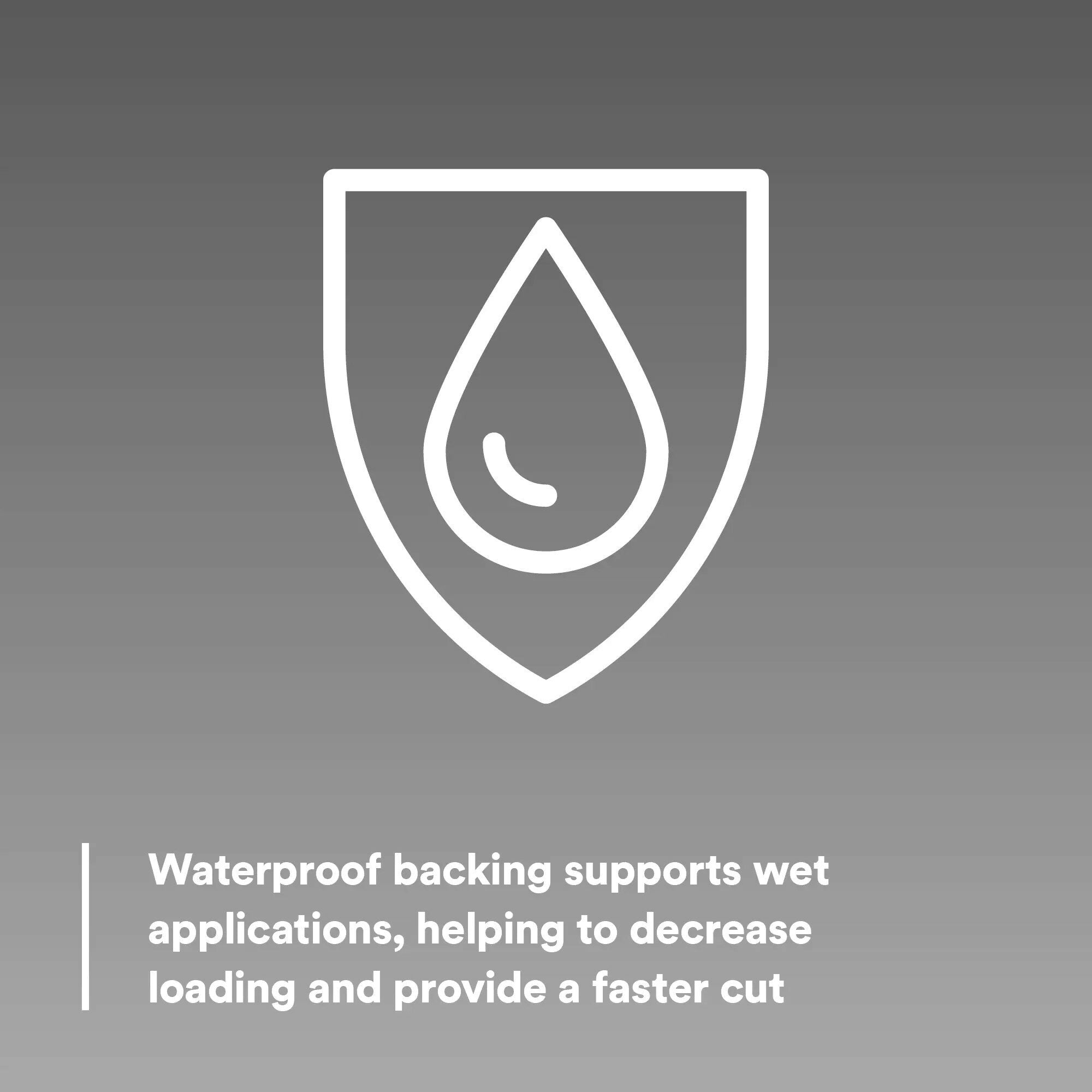 - Waterproof backing supports wet applications for decreased loading and a faster cut