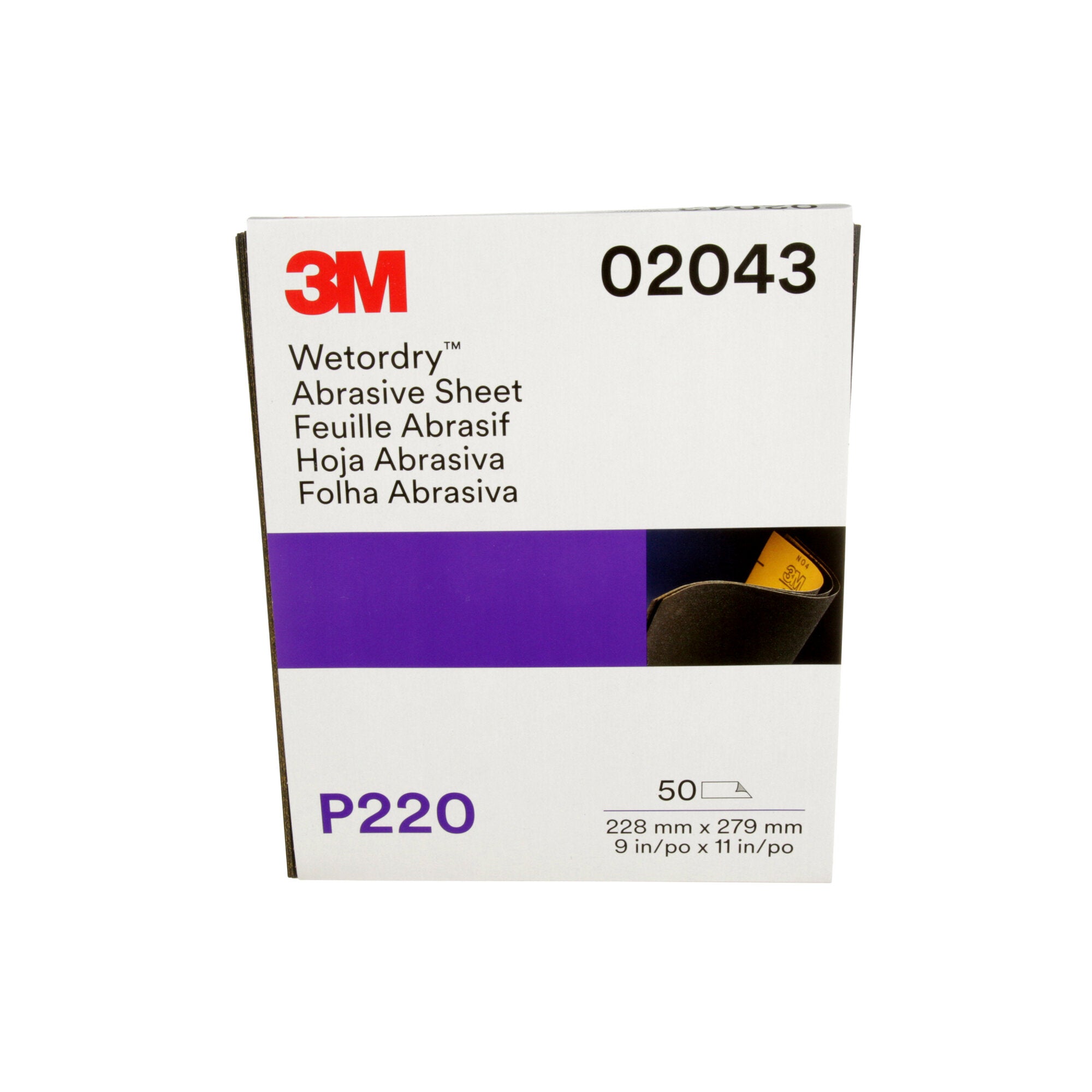 3M Wetordry Abrasive Sheet, 02043, P220, 9 in x 11 in, 50 sheets percarton