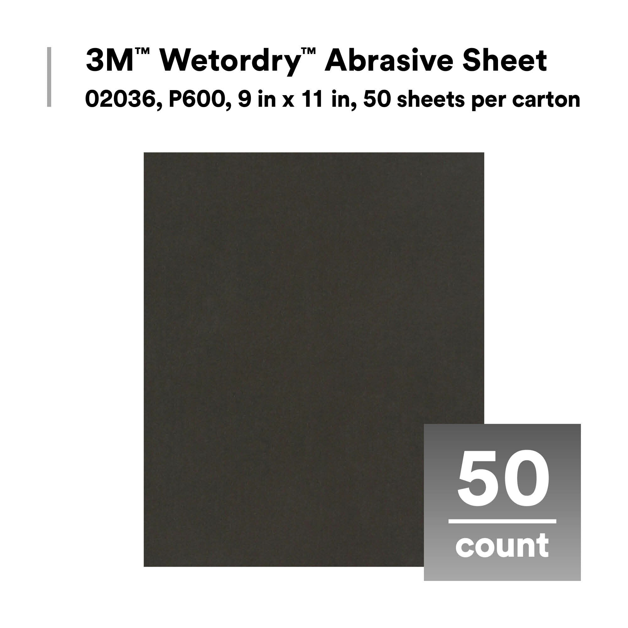3M Wetordry Abrasive Sheet 213Q, 02036, P600, 9 in x 11 in, 50 sheetsper carton