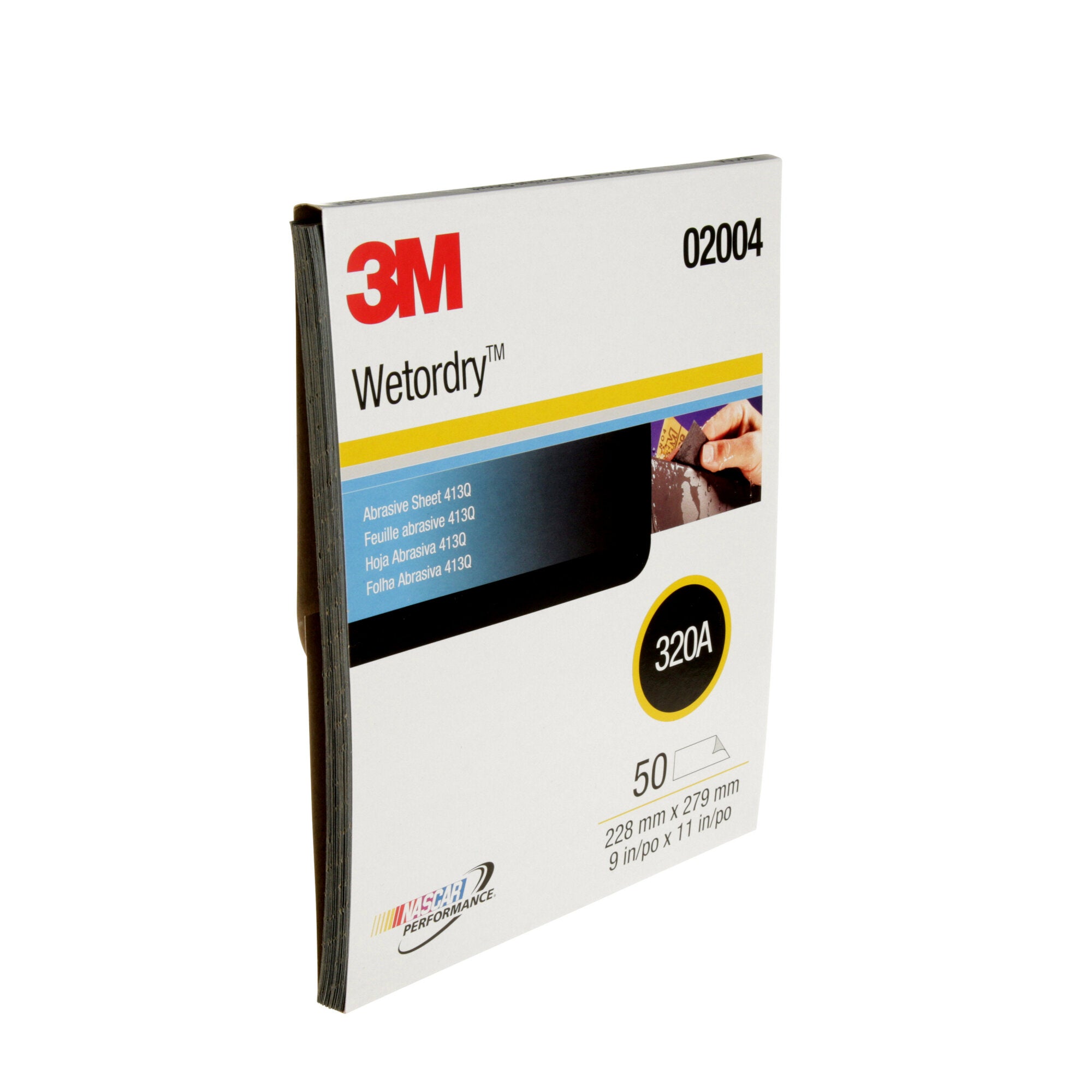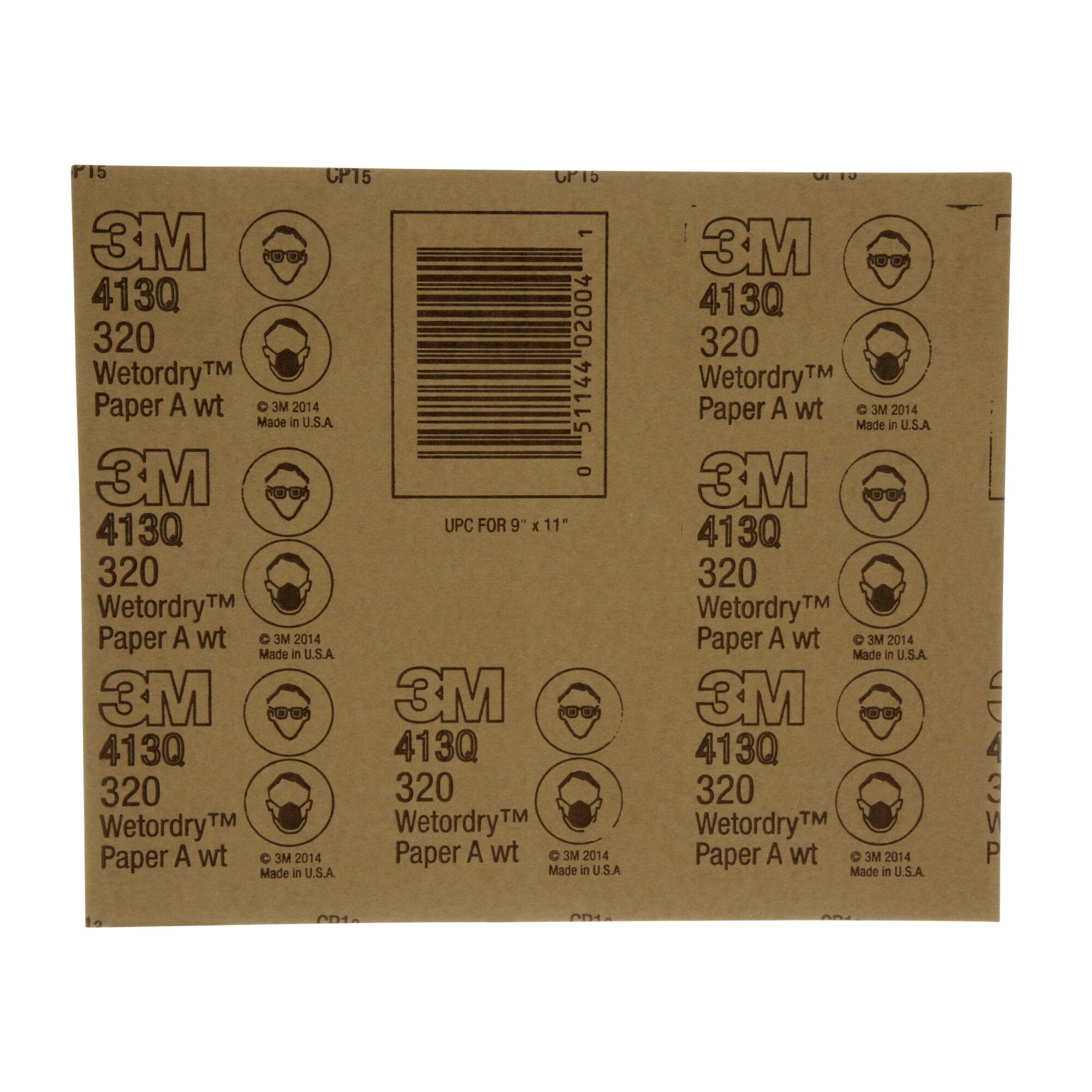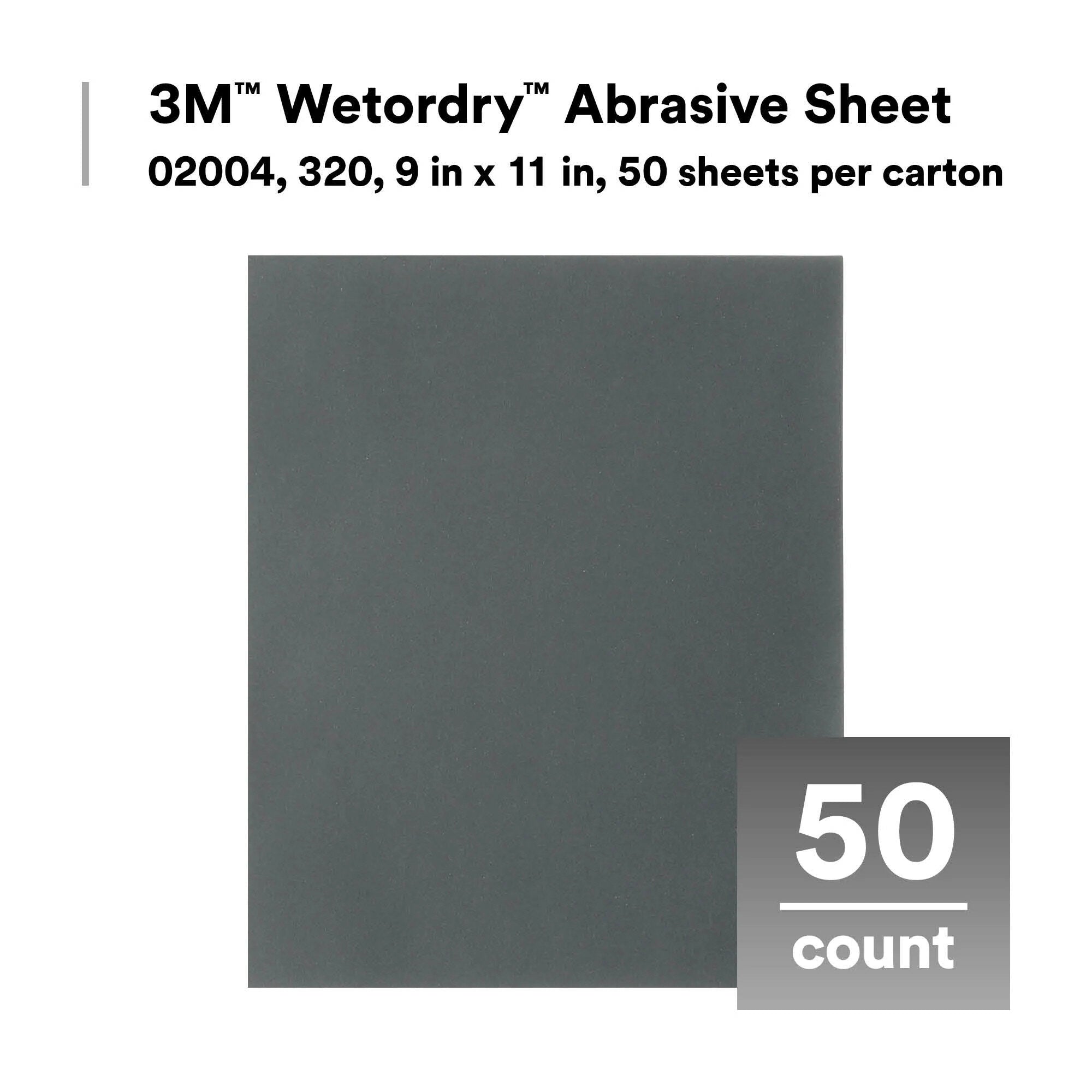 3M Wetordry Abrasive Sheet 413Q, 02004, 320, 9 in x 11 in, 50 sheetsper carton