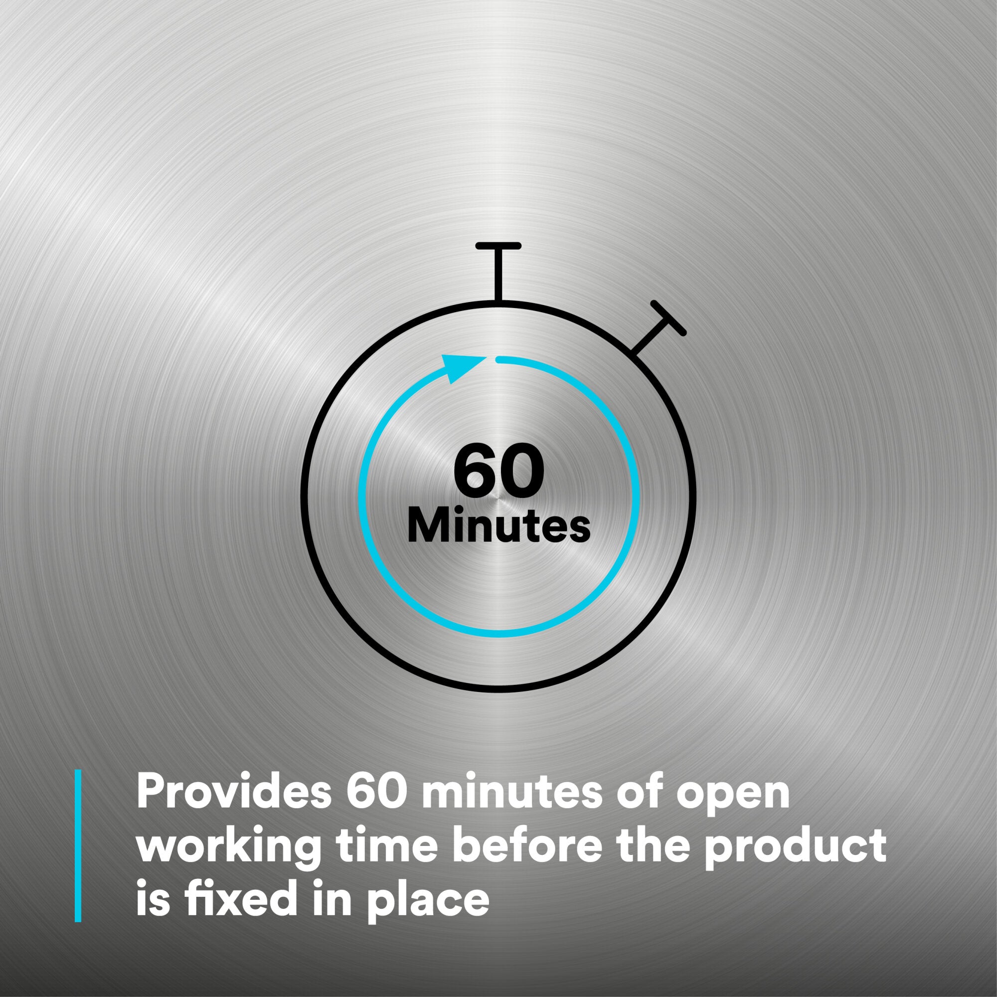 - TIME TO ADJUST: Provides 60 minutes of open working time before the product is fixed in place
