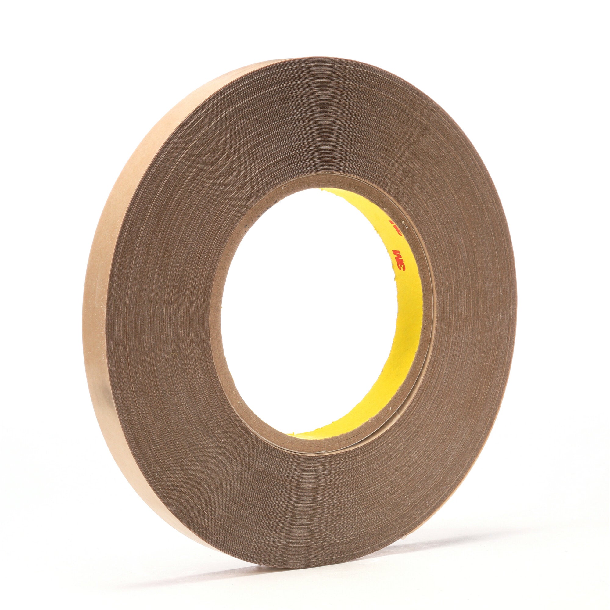 3M™ Adhesive Transfer Tape 9485PC is a 5.0 mils (.127 mm) thick transfer tape consisting of our 3M™ Adhesive 350, a modified high performance acrylic adhesive designed for applications requiring high shear strength. The adhesive is a mounted on a tan colored, 58 lb. PCK (polycoated kraft) liner. This liner is moisture resistance and helps to minimize wrinkles. This tape is a high performance, high temperature, solvent-free industry standard tape with excellent chemical (such as gasoline, oil, sodium chloride, mild acids, alkaloids and more) and moisture resistance. It is a fiber reinforced adhesive, a feature that is important for roll stability in narrow widths. This tape is ideal for joining materials that have rougher surfaces.