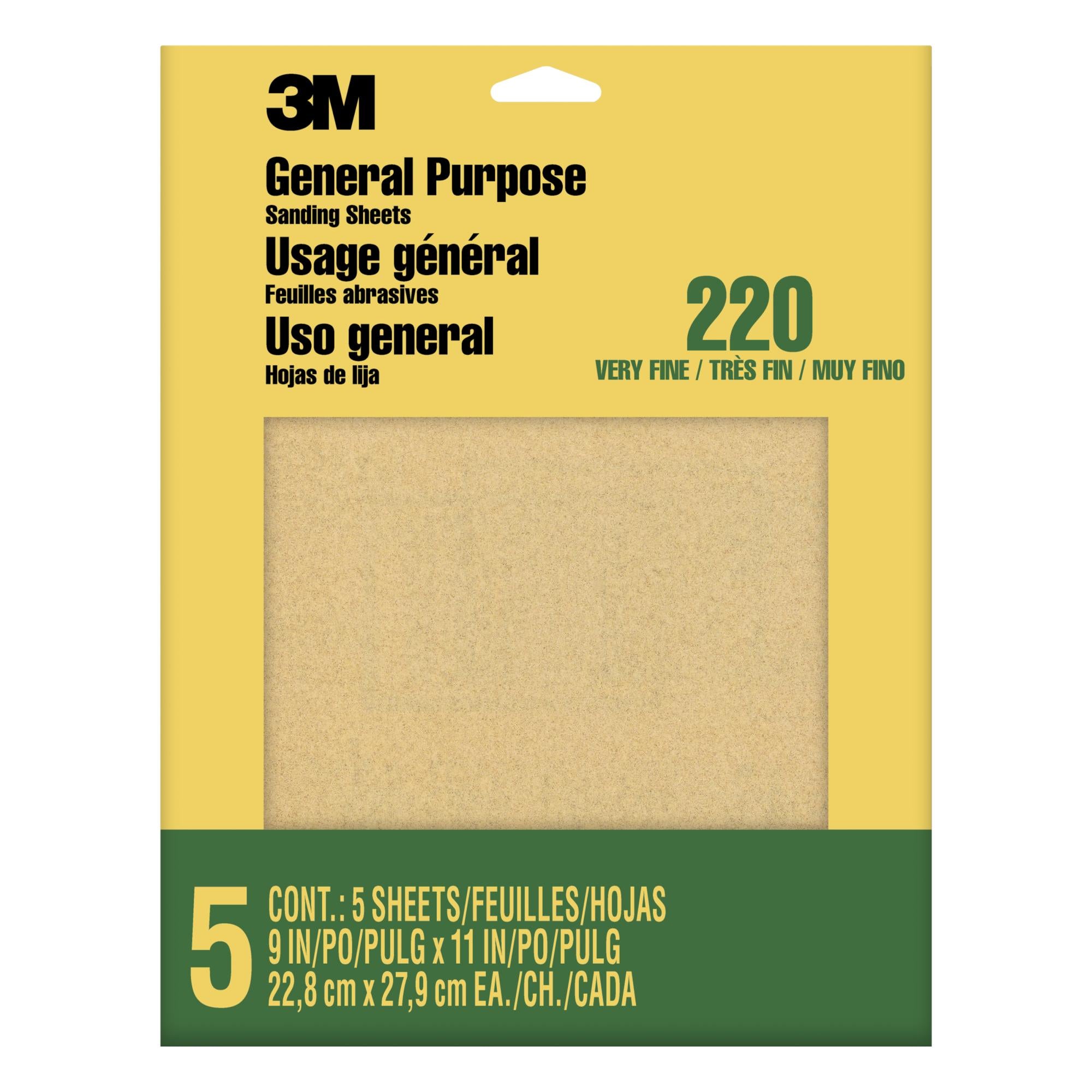 3M Sandpaper comes in a variety of minerals and a wide grit range. Ideal for painted surfaces, bare wood, and metal. Sheets can be cut to fit hand sanding, on a sanding block, or a power tool sander.3M Aluminum Oxide Sandpaper 9000NA, 9 in x 11 in, Very Fine grit. 3M sandpaper comes in a variety of minerals and a wide grit range. This very fine grit aluminum oxide sandpaper is a general purpose abrasive that can be used on painted surfaces, bare wood, and metal. The 9 in x 11 in sheets can be cut to size to use by hand, on a sanding block, or a power tool sander. Sanding is an integral step in preparing a surface to receive a coating. For the best sanding results, sand with the grain of the wood and work through a sequence of grits, from coarse to very fine.