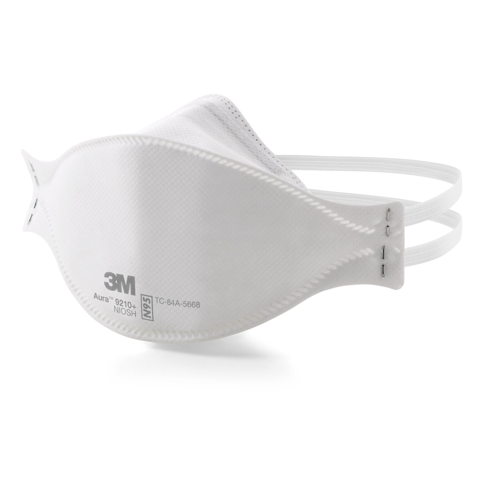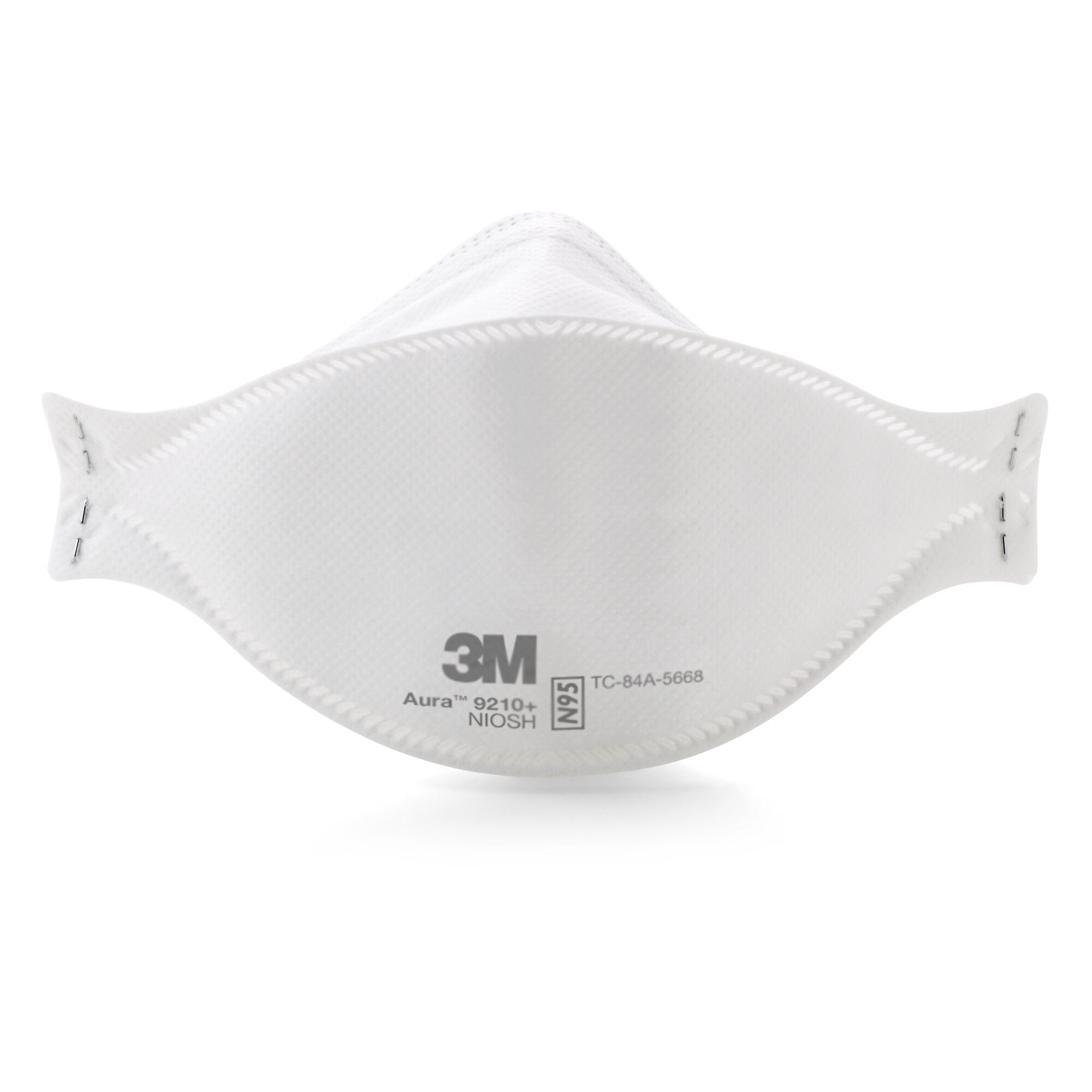 The 3M Aura Series Particulate Respirator 9205+, N95 is a three-panel, flat-fold disposable respirator designed to help provide comfortable, reliable worker protection against non-oil based particles.3M™ Particulate Respirator 9205+, N95 is a disposable particulate respirator that is designed to help provide reliable respiratory protection of at least 95 percent filtration efficiency against certain non-oil based particles. The lightweight, three-panel designed respirator helps provide quality, reliable, and convenient worker respiratory protection. 3M uses a variety of innovative technologies and features to help you meet your respiratory protection and comfort needs. 3M`s proprietary filter media, 3M™ Advanced Electret Media, filters dust and other particles, while allowing for easy breathing. The soft inner material provides added comfort while the soft nose foam and adjustable nose clip help provide a custom seal. Unique features to the Aura™ Series Particulate Respirators include: sculpted nose panel that follows the contours of your nose allowing more room for eyewear, embossed top panel that is designed to help reduce the fogging of eyewear from warm, moist exhaled air, and innovative chin tab designed for ease of positioning, donning, and adjustment. These features are designed to enhance user comfort; the unique three-panel flat fold design is collapse resistant and its individual packaging allows for easy storage prior to use.