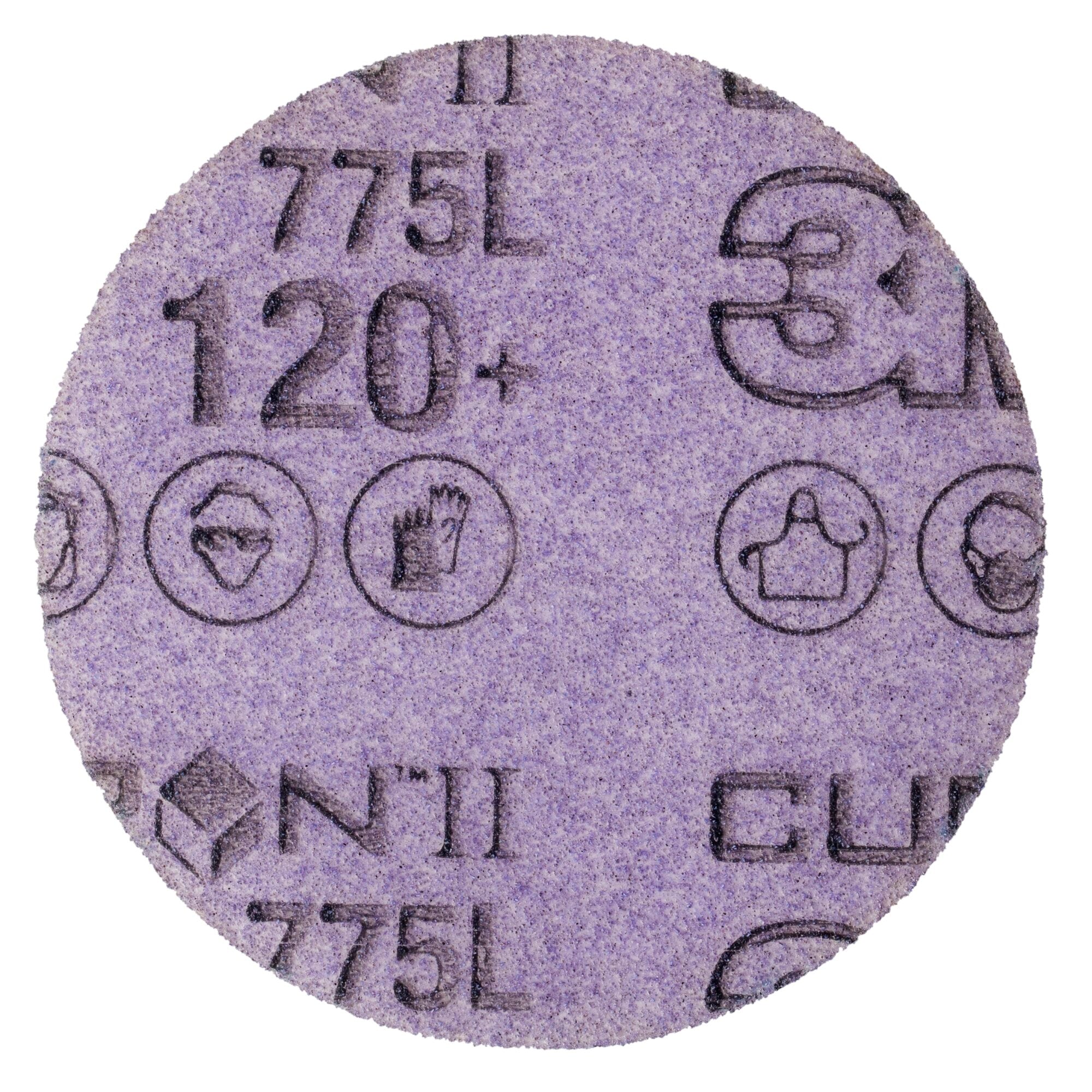 3M™ Cubitron™ II Stikit™ Film Disc 775L features 3M Precision Shaped Ceramic Grain, a revolutionary advancement in abrasive technology. The triangular shaped ceramic mineral is designed to slice through the substrate, rather than gouging or “plowing” like conventional abrasives, resulting in a disc that cuts up to 2x as fast and lasts up to 6x as long as conventional abrasives.These discs are ideal for a broad range of applications focused primarily on stock removal, and are effective on a wide variety of substrates, including metals, composites, gelcoat, and whitewood. The film backing offers greater tear resistance than paper discs, for additional durability and edge retention. For best results, pair with 3M™ Elite Random Orbital Sanders.