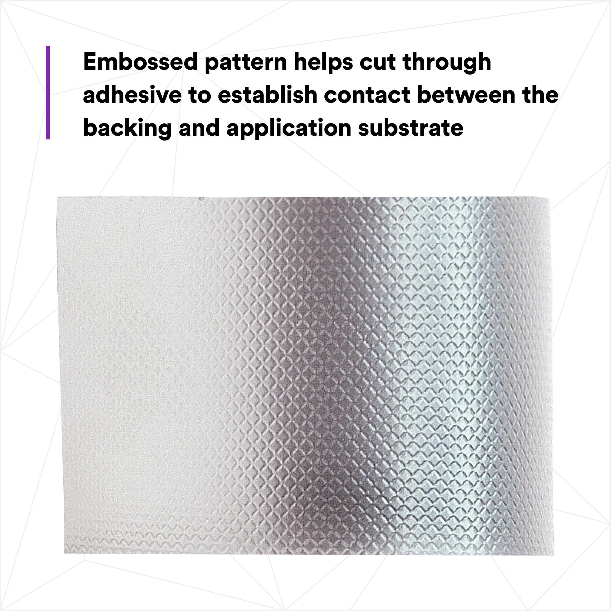 - Embossed backing cuts through the layer of adhesive for establishing contact between the backing and the application substrate