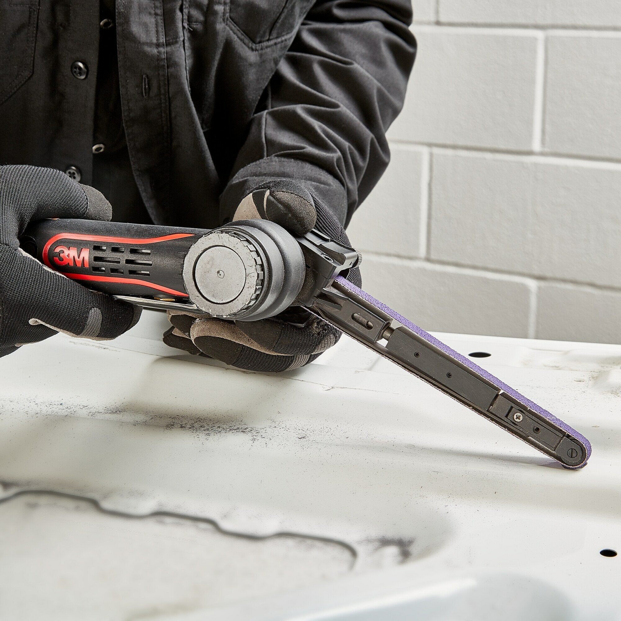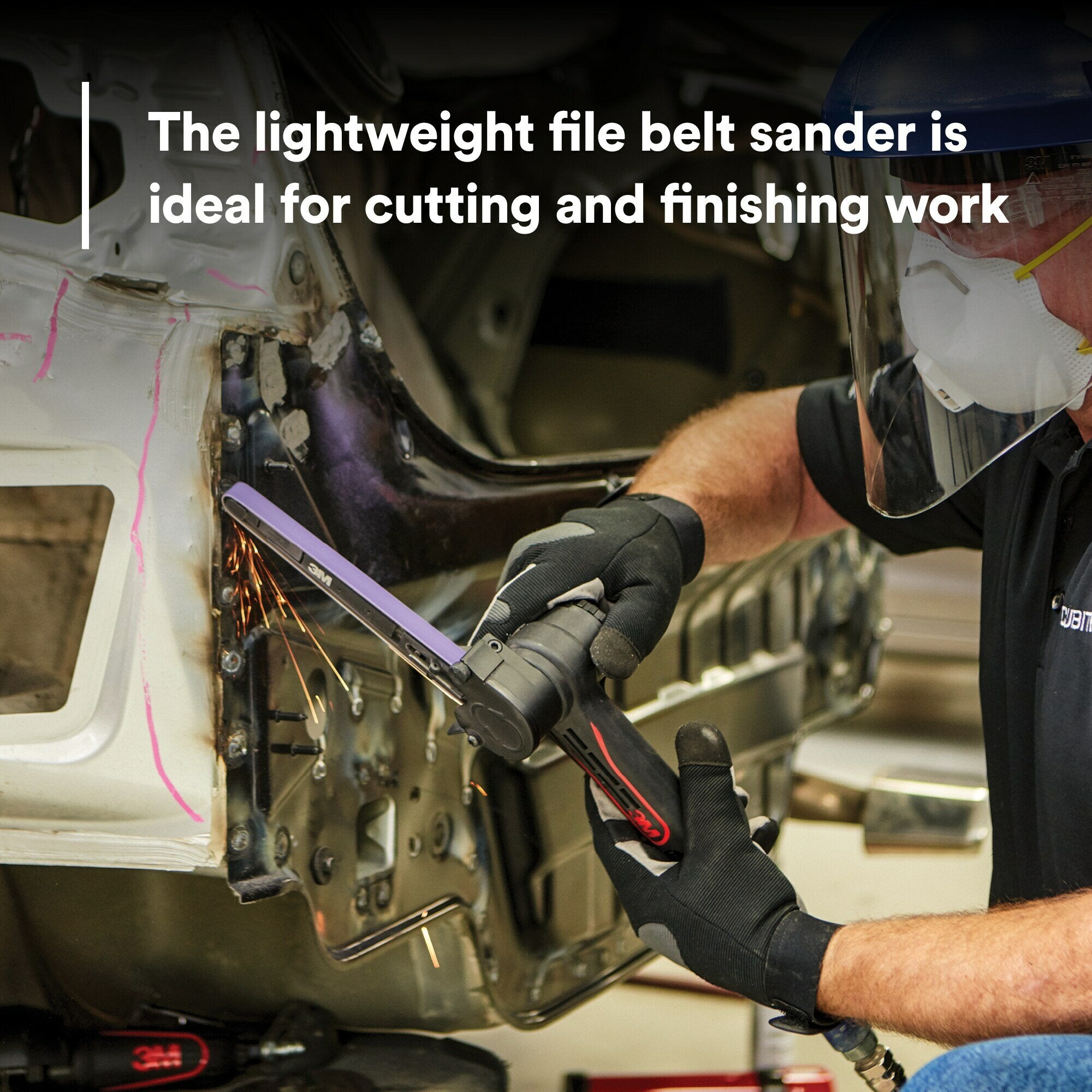 The 3M File Belt Sanders for Body Repair features the technology and versatility of 3M metalworking belt sanders in a size thats ideal for automotive collision repair. This narrow-profile tool is excellent for cutting in tight areas, including cutting, dressing and refining spot welds as well as blending and finishing. This file belt sander is designed for use with 3M Cubitron II abrasives.A File Belt Sander Sized and Powered for Collision Repair