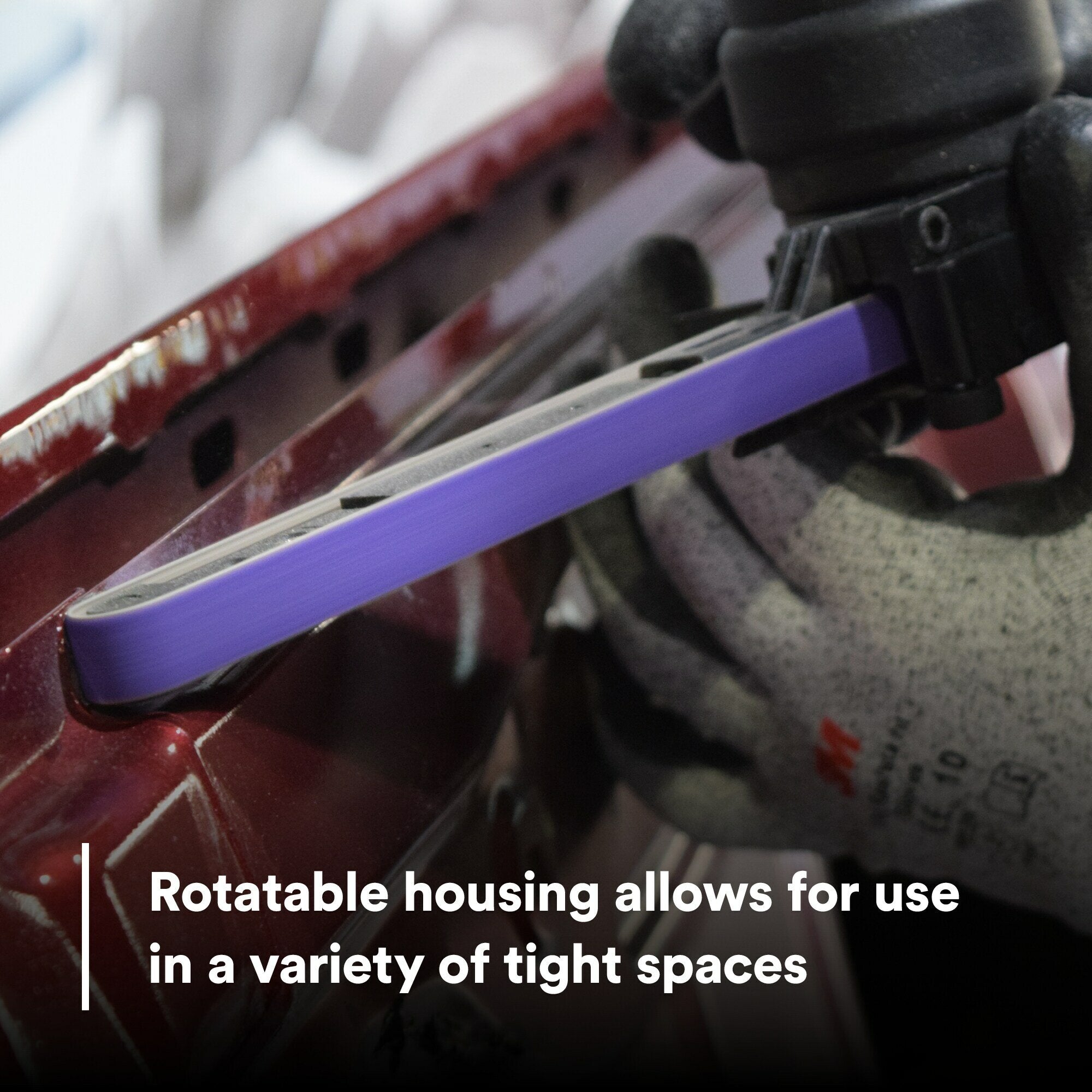 The 3M™ File Belt Sanders for Body Repair is especially suitable for sanding or grinding in tight areas such as between door panels or along sharp contours. The entire housing is rotatable, enabling the operator to turn and rotate the sander and the belt for hard-to-reach areas. The sander's weight is balanced throughout the unit, and a rotatable housing offers added comfort and control.