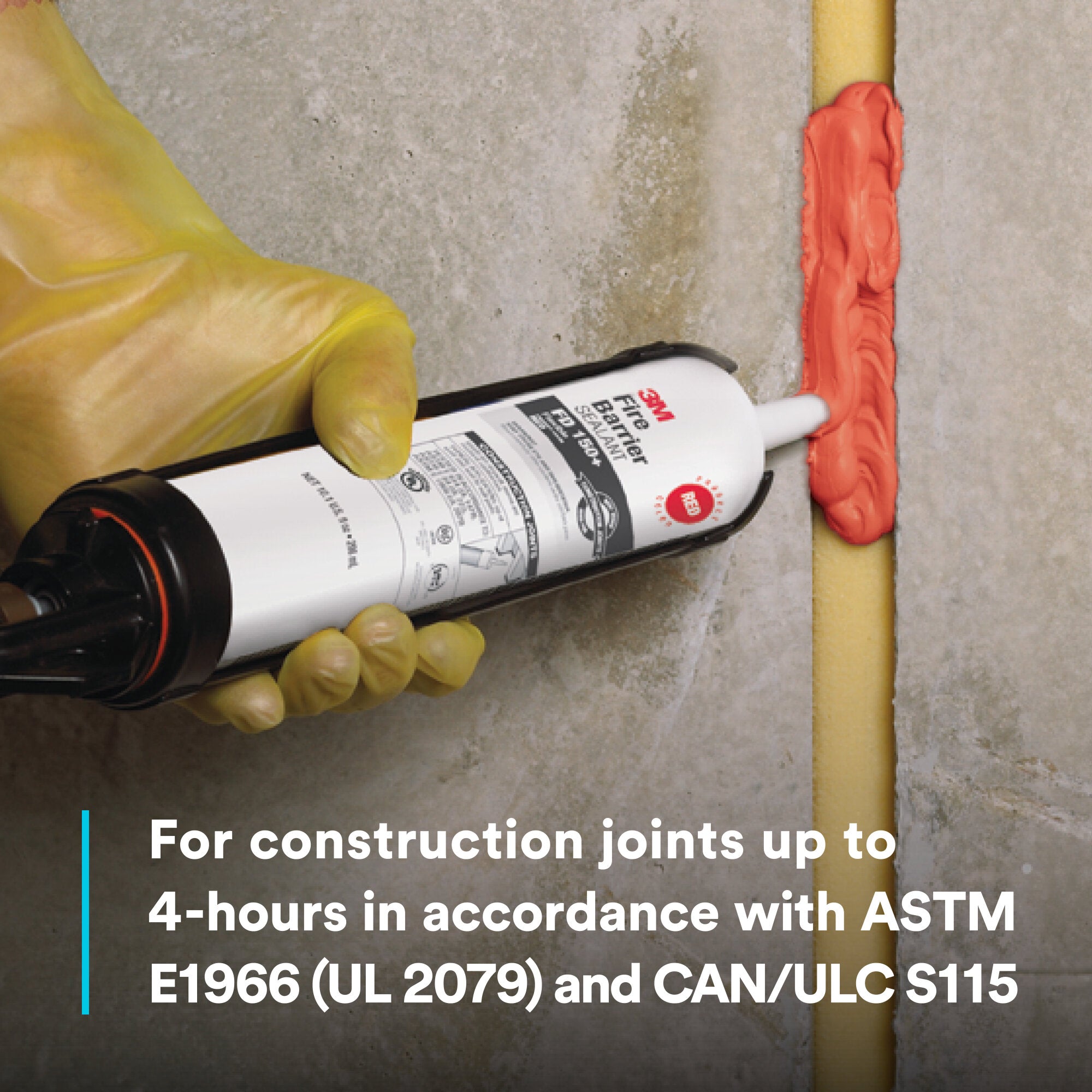 Ready-to-use, 3M™ Fire Barrier Sealant FD 150+ is a latex-based elastomeric sealant. This gun-grade sealant cures when dispensed to form a monolithic flexible firestop seal and, when properly installed, this product provides up to 4-hour fire protection in tested and listed systems. We formulated this sealant to help prevent the spread of fire, smoke and noxious gas and firestop joints and through penetrations through floor slabs, walls and other fire-rated building partitions and assemblies. This firestop sealant offers a continuous seal with ± 19% movement capability for construction joints and typical pipe movement and exhibits excellent adhesion to a full range of construction substrates.