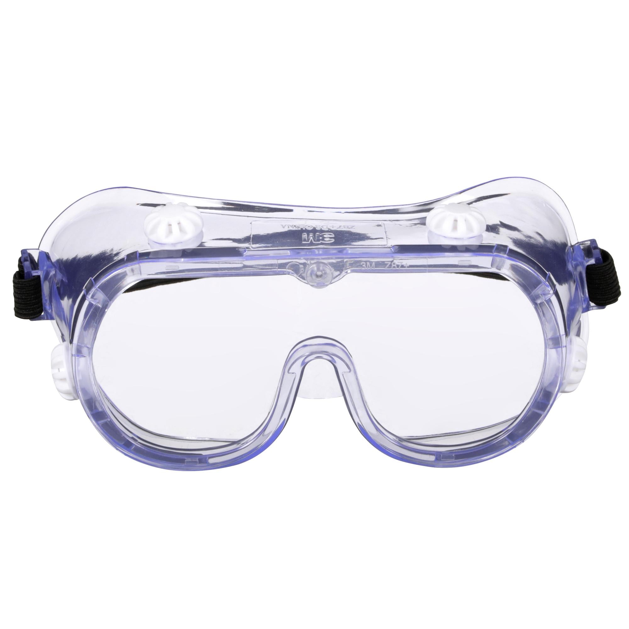 Let's face it–some jobs are messy, but with the help of the 3M™ Chemical Splash/Impact Goggles you can protect your eyes. Equipped with a tough, polycarbonate lens and soft, pliable shroud, these safety goggles help protect against certain particles and liquids while providing a comfortable fit that conforms to your face. The large size also accommodates some personal eyewear. Strategic vents help ensure protection from liquids while allowing airflow. The stretchy, adjustable strap provides a secure, personalized fit every time. So whether you're spray painting an accent wall or ripping a plank, rely on the powerful protection of 3M™ Chemical Splash/Impact Goggles.