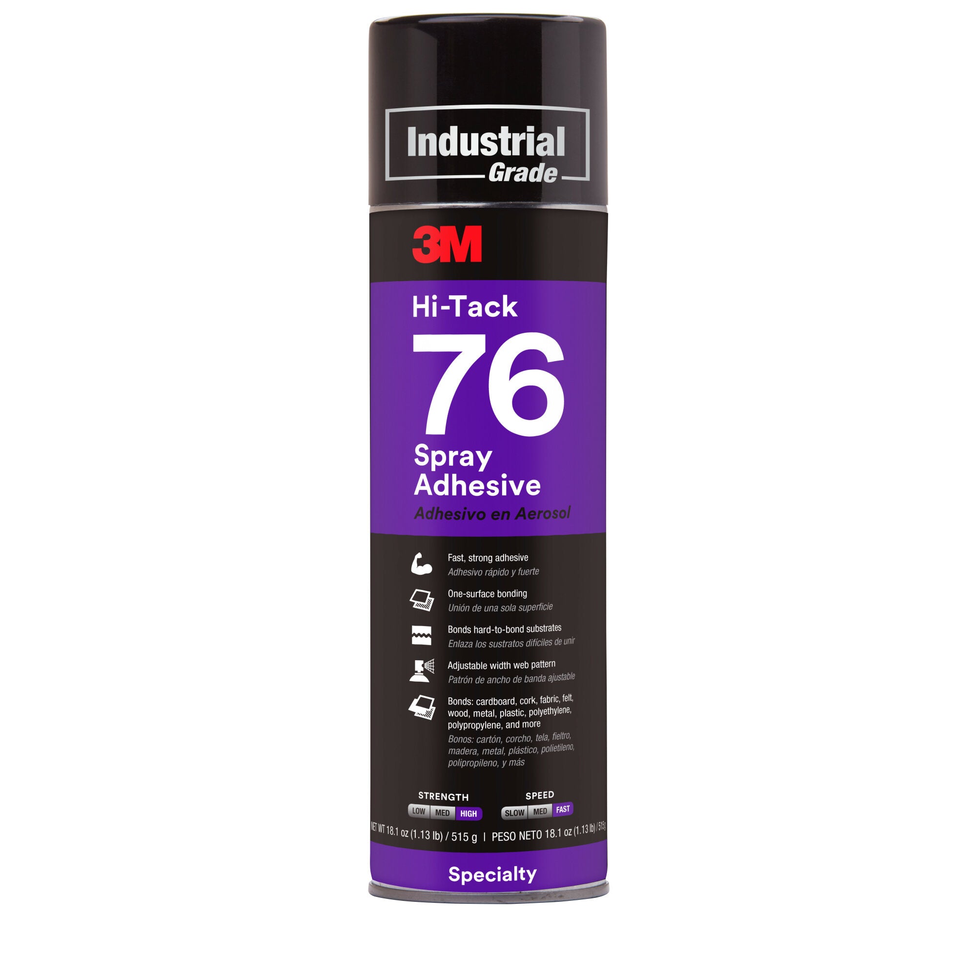3M Hi-Tack 76 Spray Adhesive is a high-tack, industrial aerosol adhesive that creates effective, strong bonds for many hard-to-hold materials, such as polyethylene and polypropylene. This is a fast-tacking adhesive with a variable-width lace spray pattern that minimizes waste and overspray, providing fast and clean results.