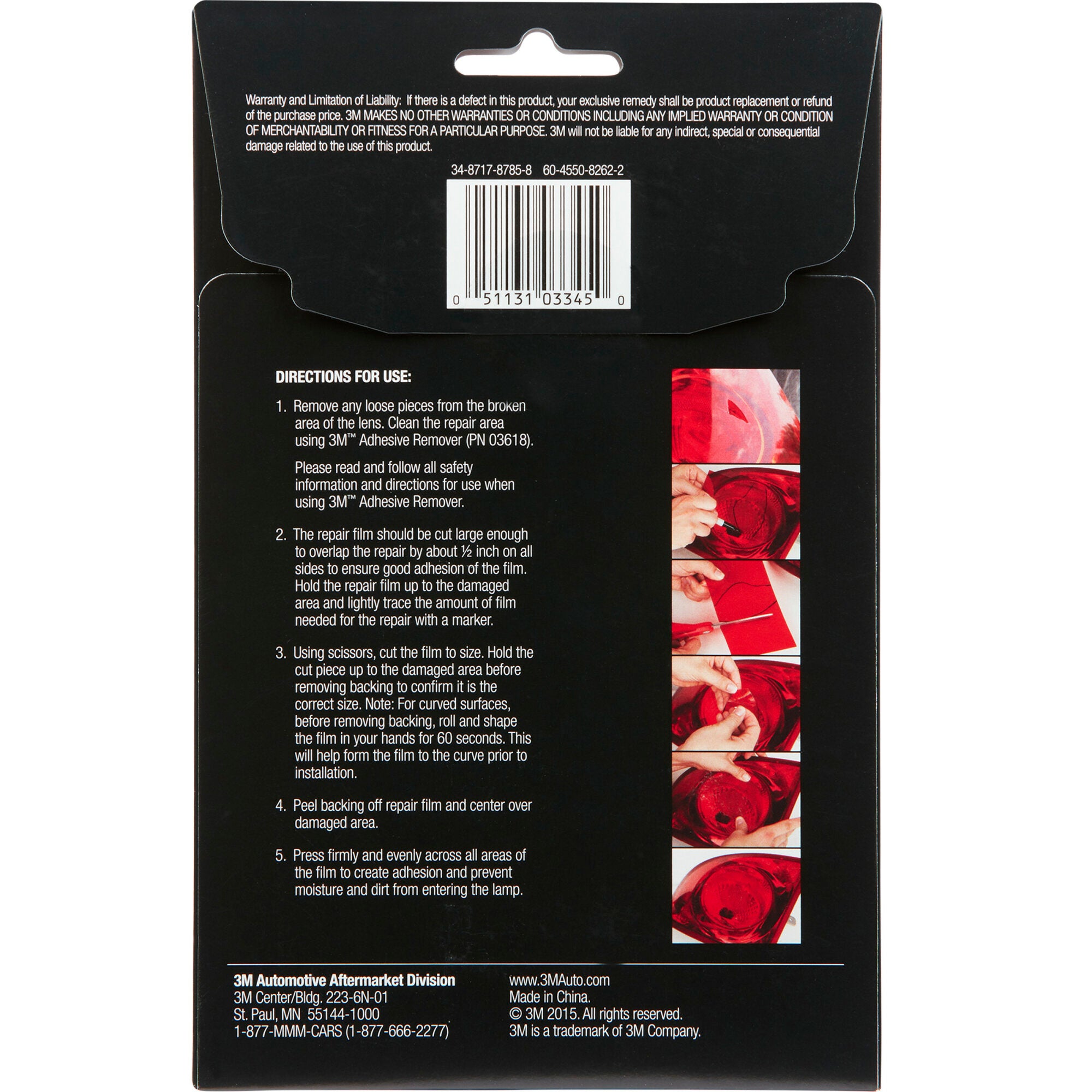 3M High Strength Lens Repair Film is a fast, simple method for repairing cracked and broken car and truck taillights, signal lights and other automotive lenses. It features durable and flexible plastic film and a strong adhesive that adheres even around curved lens surfaces for a weatherproof, airtight seal. Its available in three colors for fixing rear lights, turn signals and more.Our 3M™ High Strength Lens Repair Film is a fast, simple method for repairing cracked and broken car and truck tail lights, signal lights and other automotive lenses. It features durable and flexible plastic film and a strong adhesive that adheres even around curved lens surfaces for a weatherproof, airtight seal. It’s available in three colors for fixing rear lights, turn signals and more.