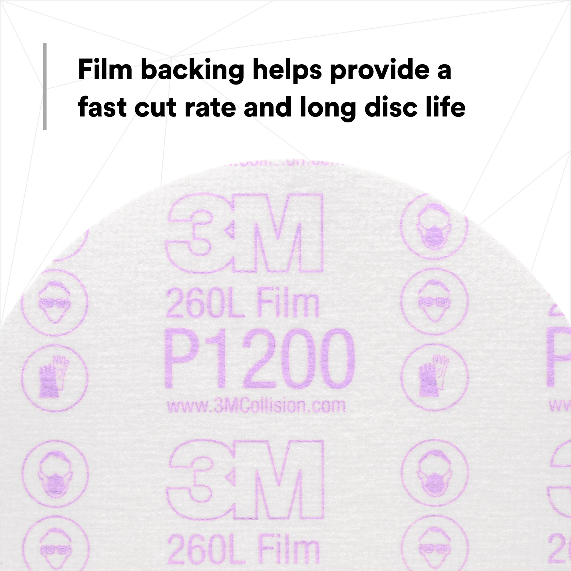 Our film backing on abrasive discs is a combination of science and strength – smooth, flexible, durable and ideal for refined auto body finishing work. The 3M™ Hookit™ Film Disc 260L also delivers long disc life, consistently sharp cut and superior dust resistance for better auto body operations.