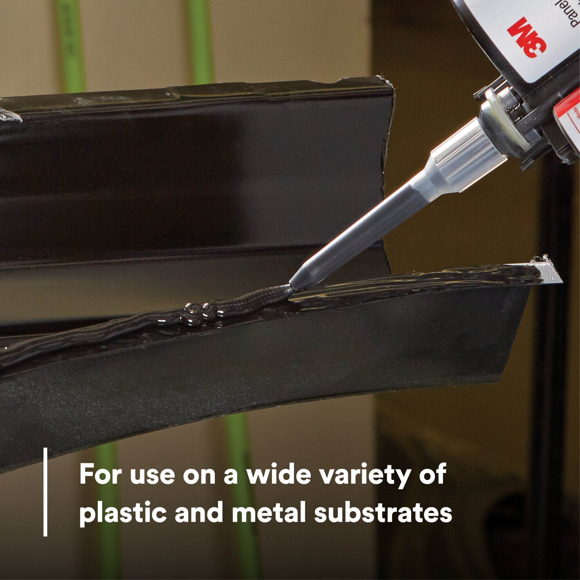 3M Panel Bonding Adhesive is a cost-effective two-part epoxy adhesive for bonding replacement body panels. From its fast, convenient cartridge system the adhesive seals and bonds steel, aluminum, SMC, and FRP securely in a single operation.