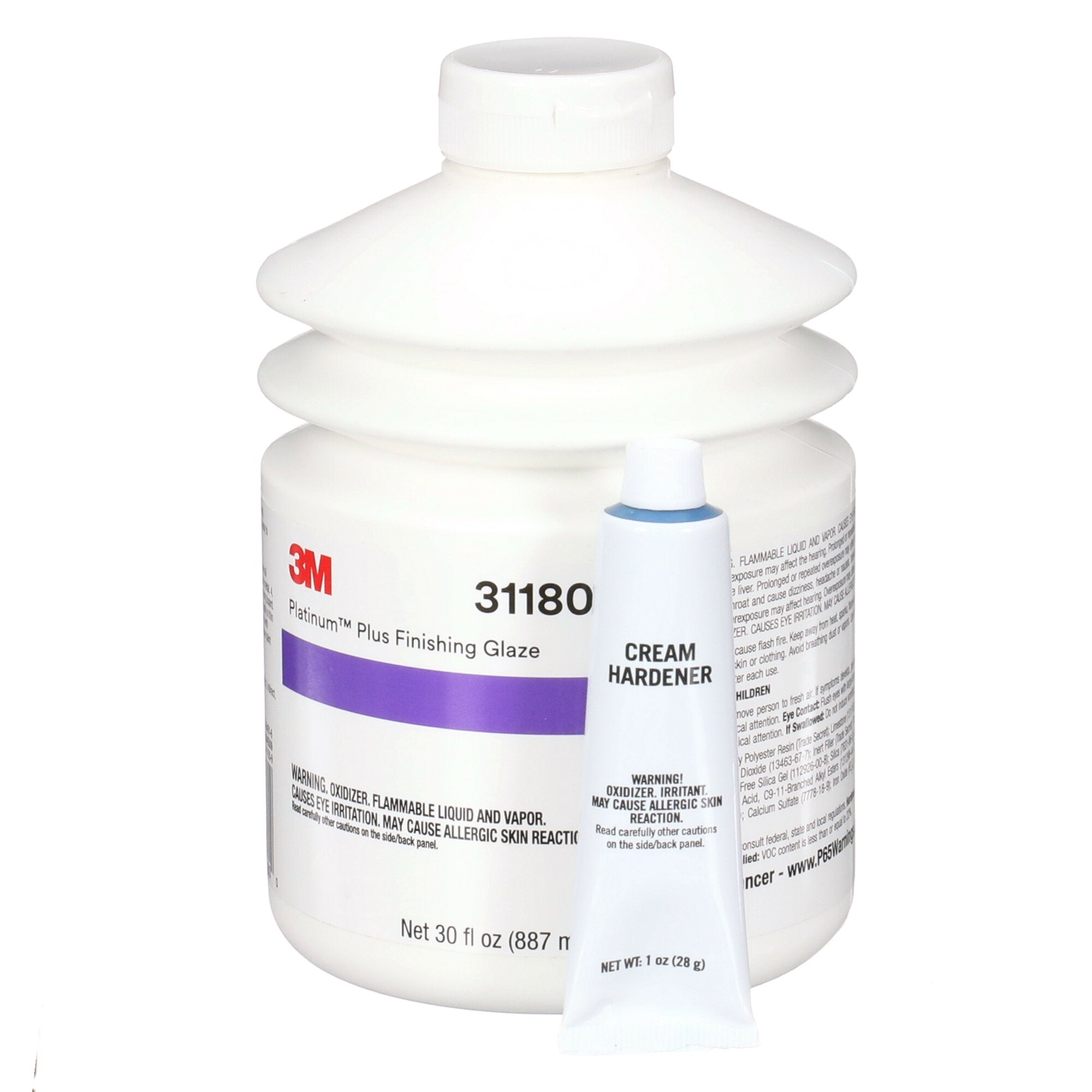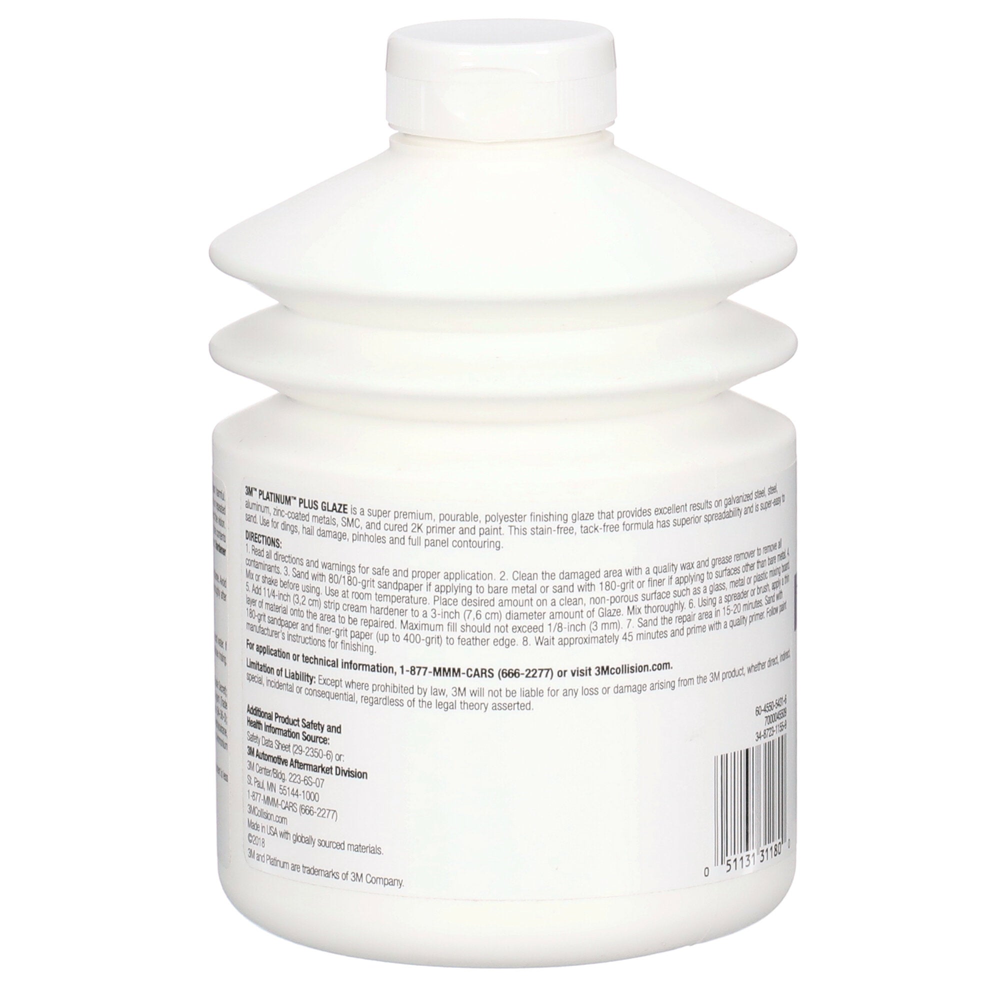 3M Platinum Plus Glaze is two-part premium selfleveling finishing glaze that can repair minor imperfections on properly prepared substrates such as galvanized steel, steel, aluminum, fiberglass, wood, SMC, E-coat, OEM topcoats, cured/sanded epoxy and urethane primers. This finishing glaze cuts the sanding time to as little as 15 minutes.Make Your Car Look New Again by Covering Minor Blemishes