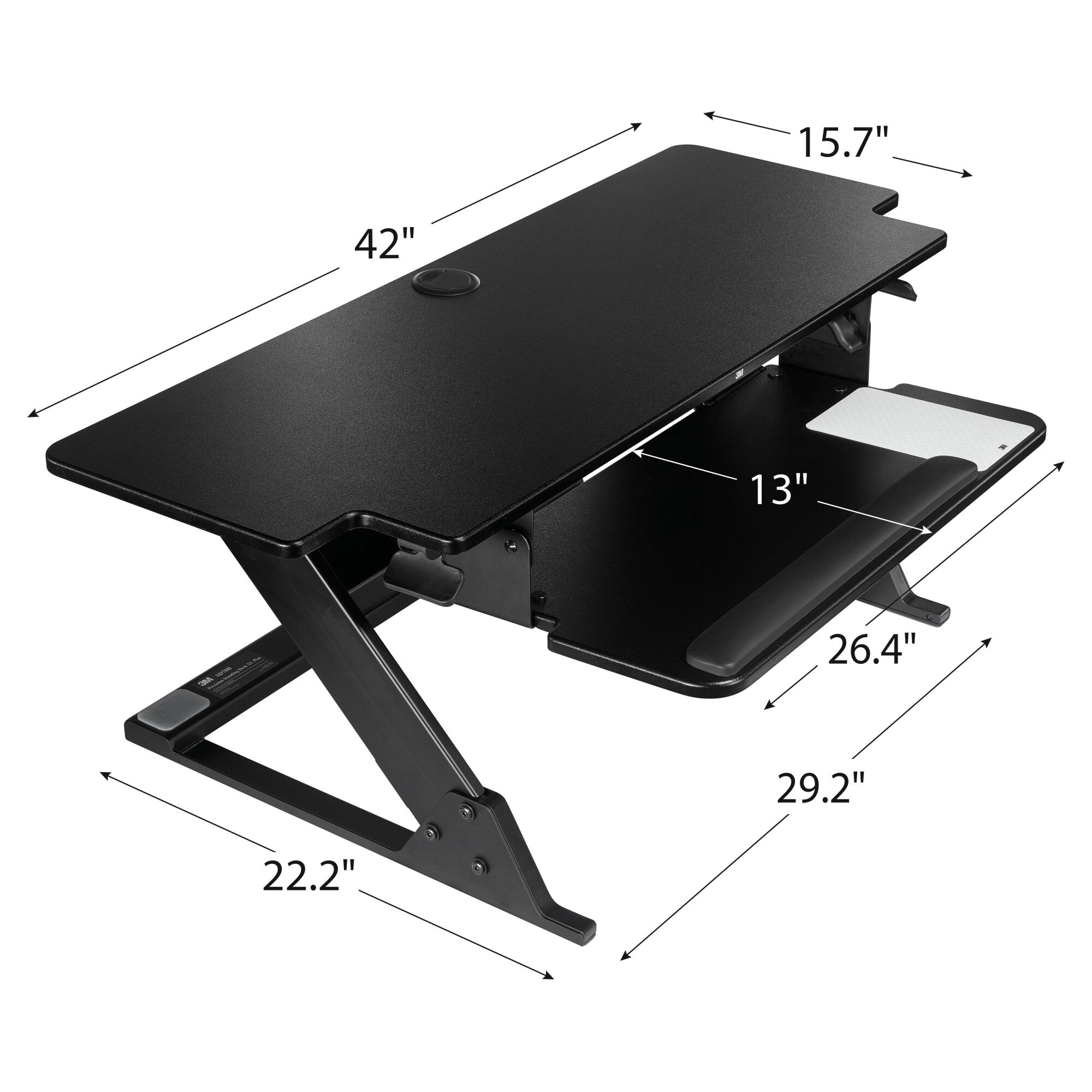 • Primary work surface is 42" W x 23.2" D and is large enough to fit two 27” monitors and holds up to 45 lbs