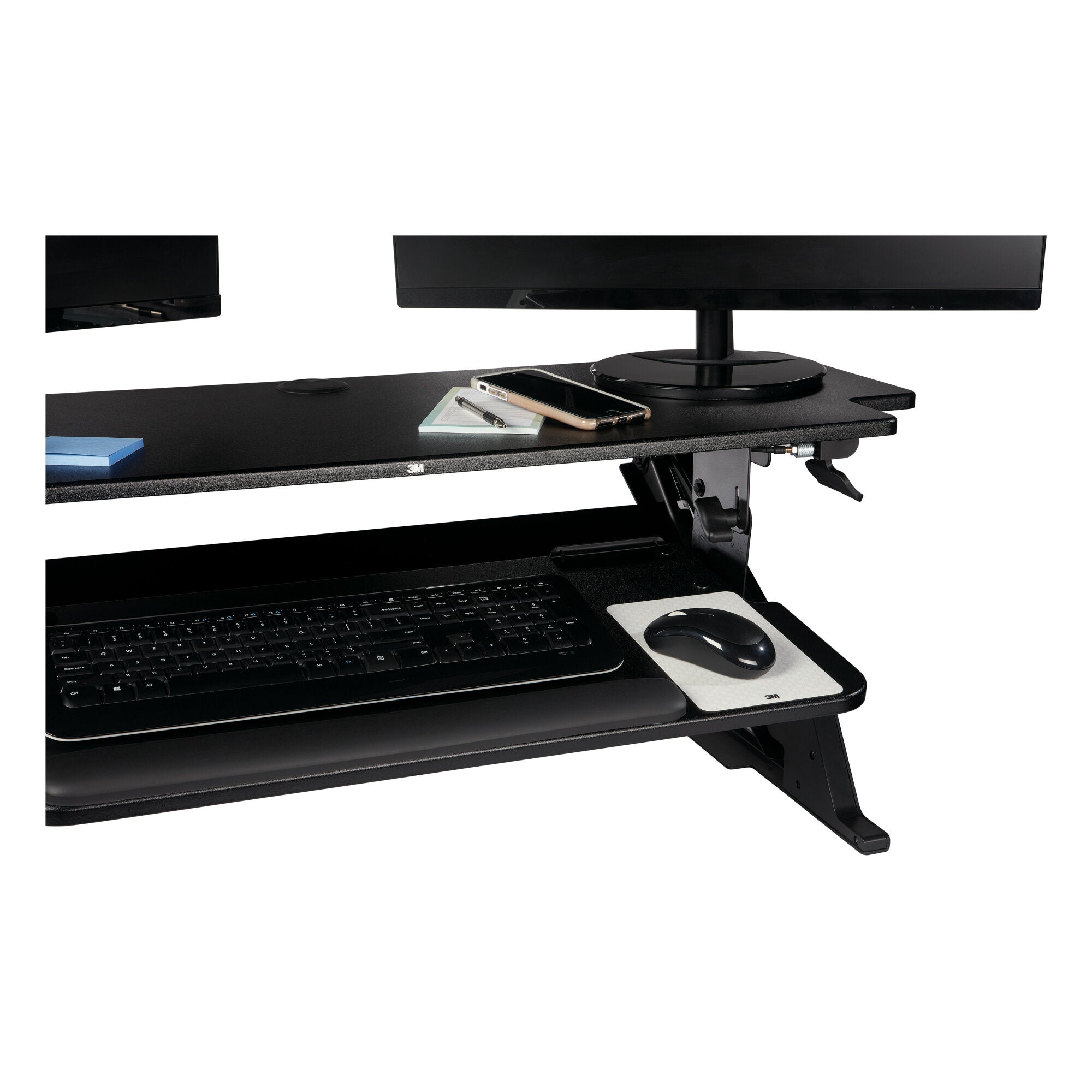 3M Precision Standing Desk XL Easy Lift, Converts Desk to Sit-Stand Desk, Fully Assembled, 42 in x 23.2 in Foot Print, Includes Gel Wrist Rest and Precise Mouse Pad, Black, SD70BWhen it comes to standing comfort, small adjustments can make a big difference! The 3M Precision Standing Desk provides maximum adjustability to achieve your most comfortable standing work position. Side-mounted levers controlling gas assist height change technology allows for continuous height settings from 6.2” to 20” above the desk surface. The keyboard surface has tilt adjustment range of -10◦/+10◦ to help achieve most comfortable typing position. The 3M Precision Standing Desk also includes a 3M Gel Wrist Rest and Precise Mouse Pad for added comfort and productivity.
