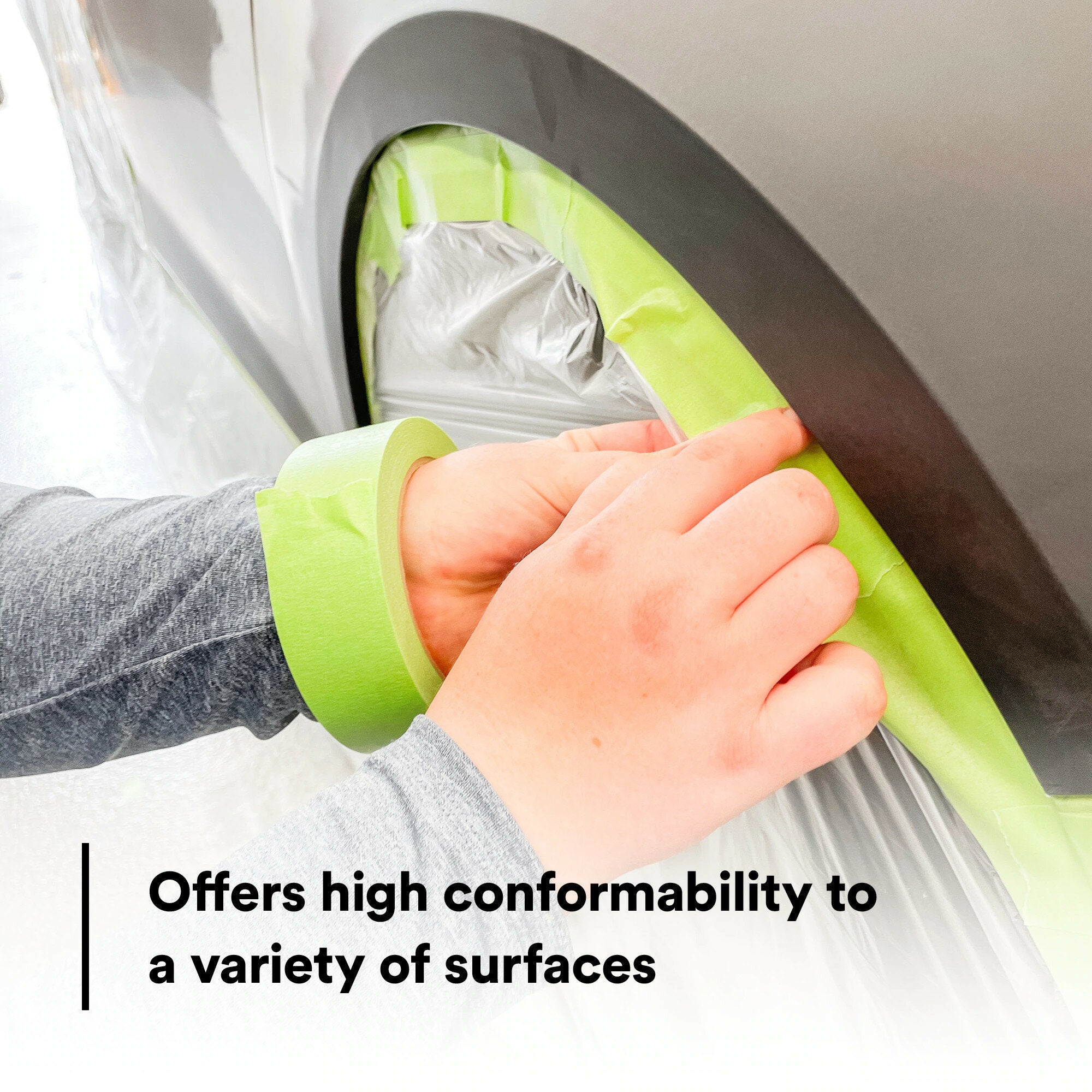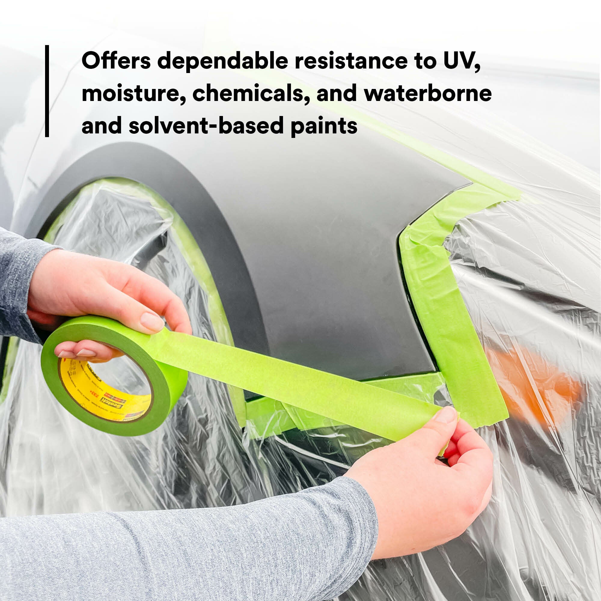 Auto body professionals will recognize the familiar green color of our Scotch® Performance Green Masking Tape 233+. The distinctive green paper backing helps improve visibility for more accurate edge alignment and is highly conformable – it resists breaking even around complex contours of a vehicle, making for fast application and eliminating the need to apply additional tape. But the backing is only one part of our tape design, balanced specifically for superior performance in auto body paint repair and maintenance