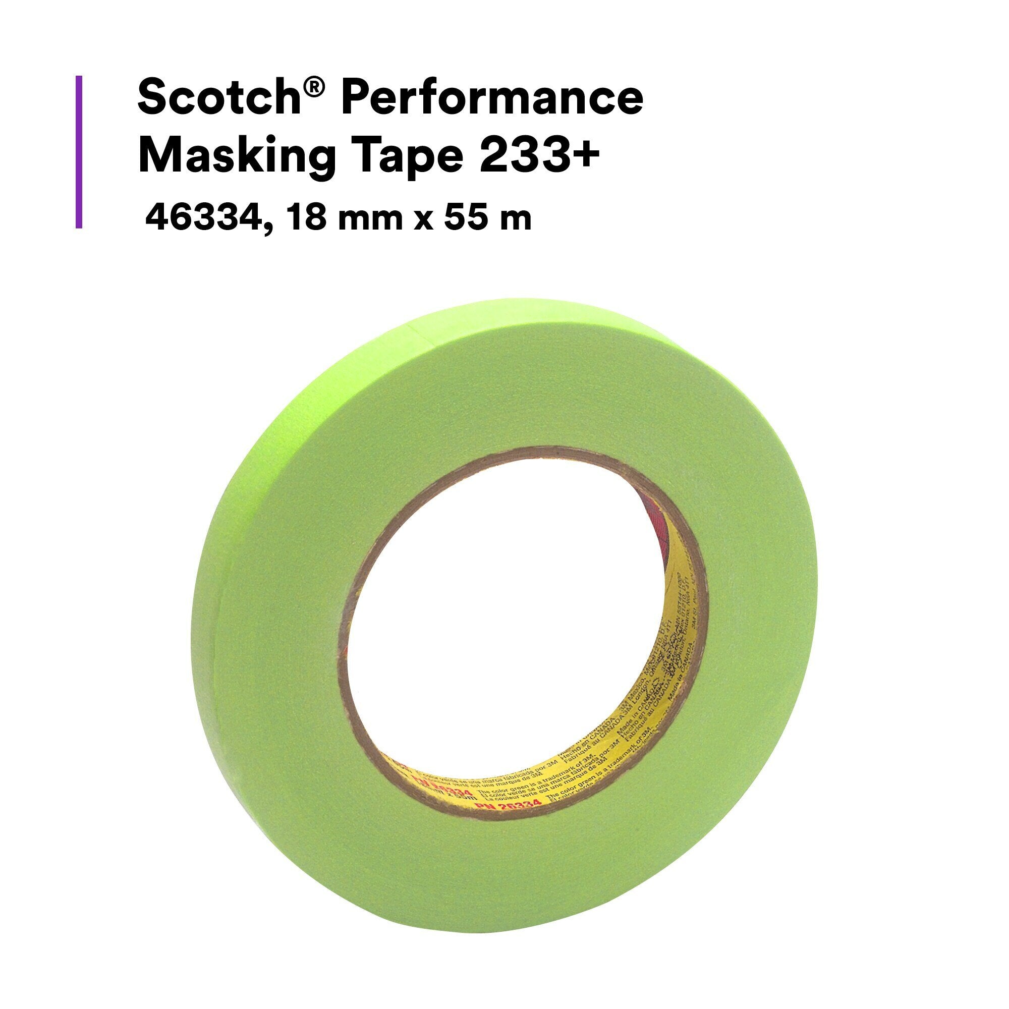 Scotch® Performance Masking Tape 233+, 46334, 18 mm x 55 m