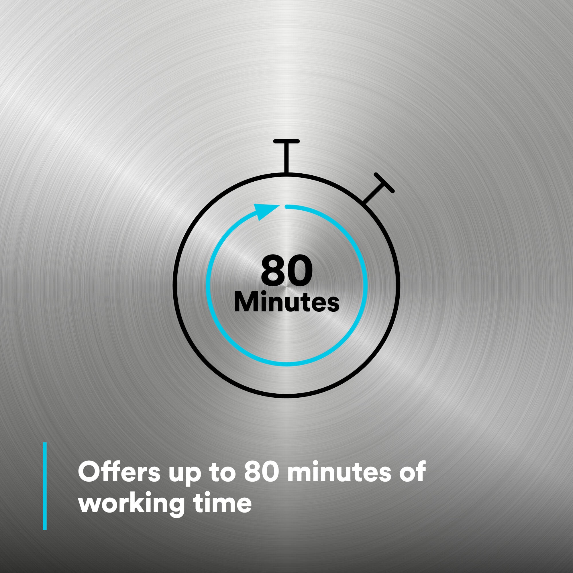 - TIME TO REPOSITION AND ADJUST: Allows up to 80 minutes of working time
