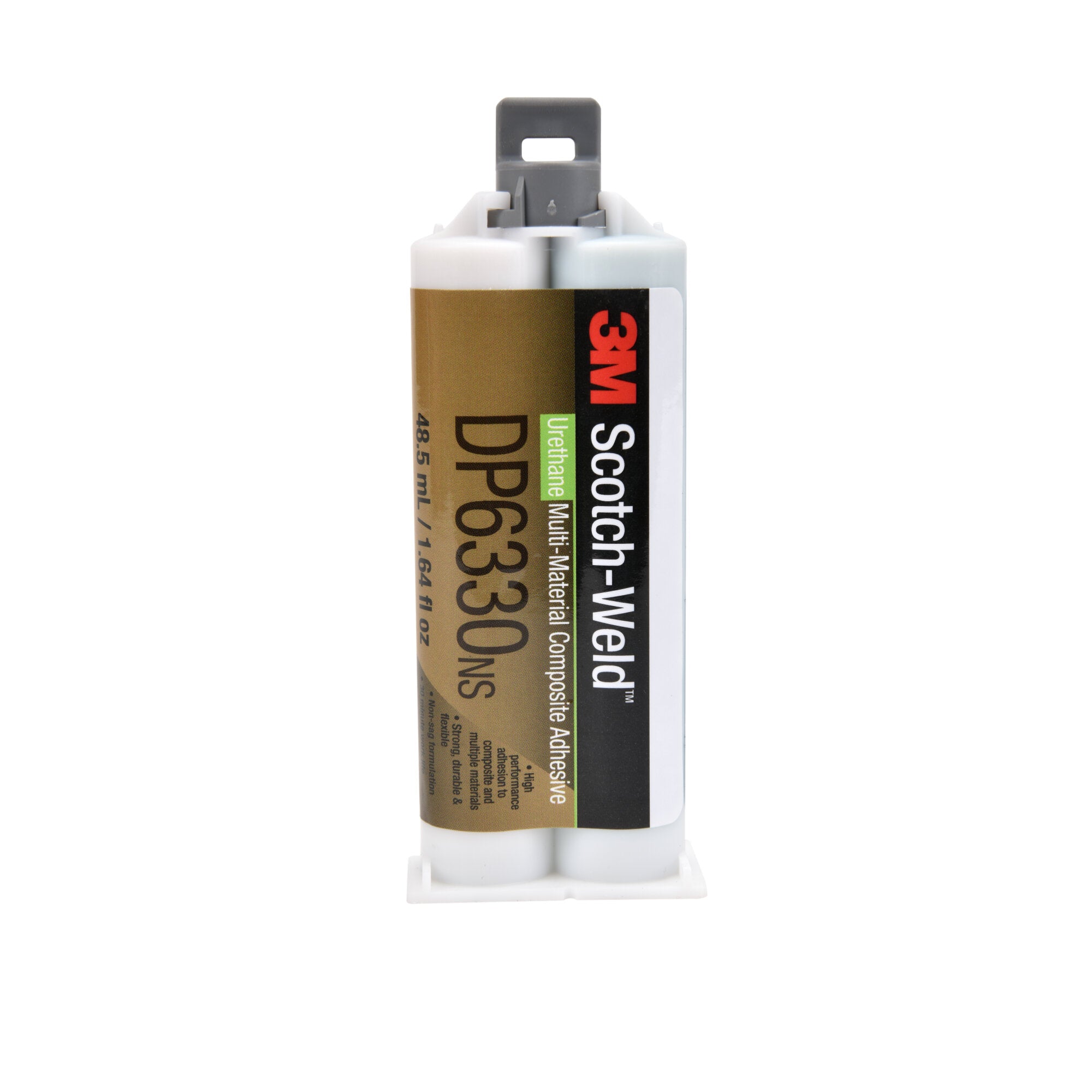 3M Scotch-Weld Multi-Material Composite Urethane Adhesive DP6330NS is a green, non-sag, two-component urethane paste for bonding a variety of composites, plastics, metals and wood. This flexible adhesive has good energy absorption and fatigue properties for durable bonding of composite parts and multi-material assemblies.