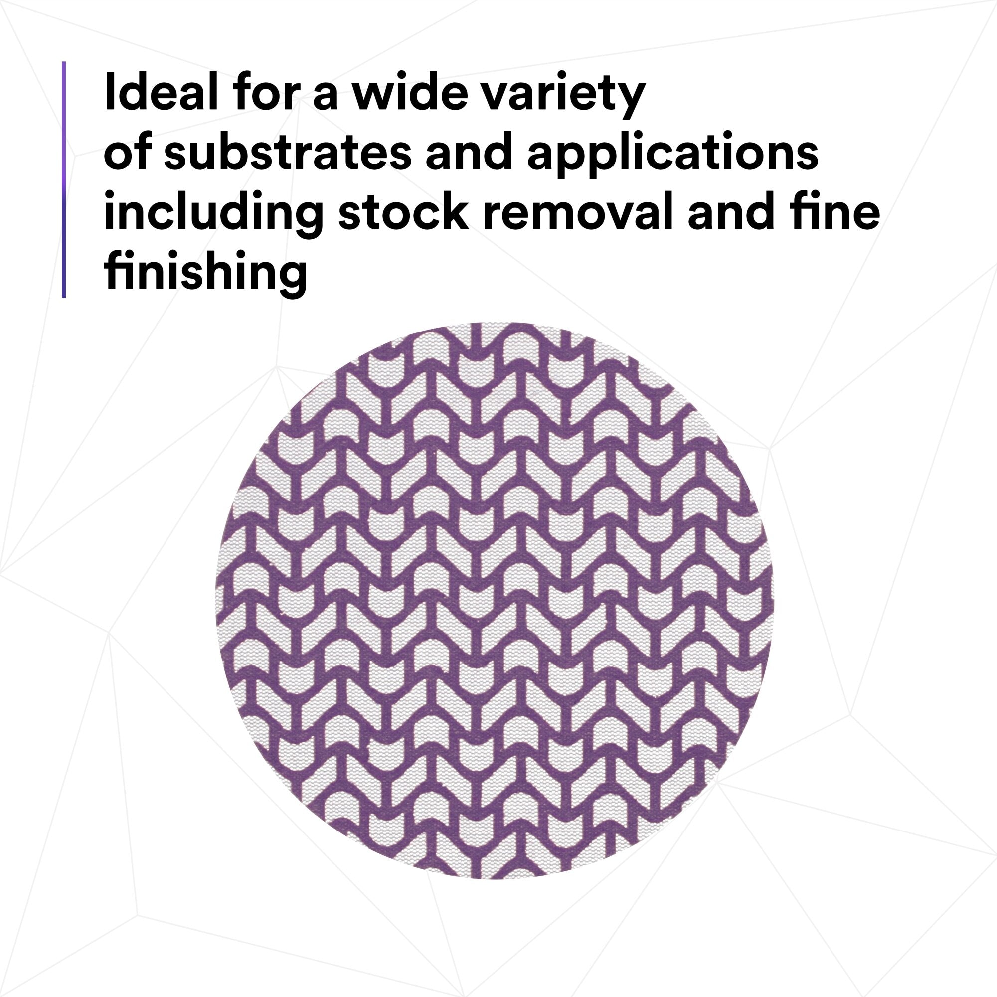 Dust extraction meets industry-leading cut-rate in 3M Xtract™ Cubitron™ II Net Disc 710W. This premium sanding disc features a unique abrasive pattern on a net backing that allows for virtually dust-free sanding, with legendary 3M Precision-Shaped Grain technology. You’ll finish more parts per disc with less dust in the environment, boosting productivity without sacrificing dust extraction.Sanding, reimagined.