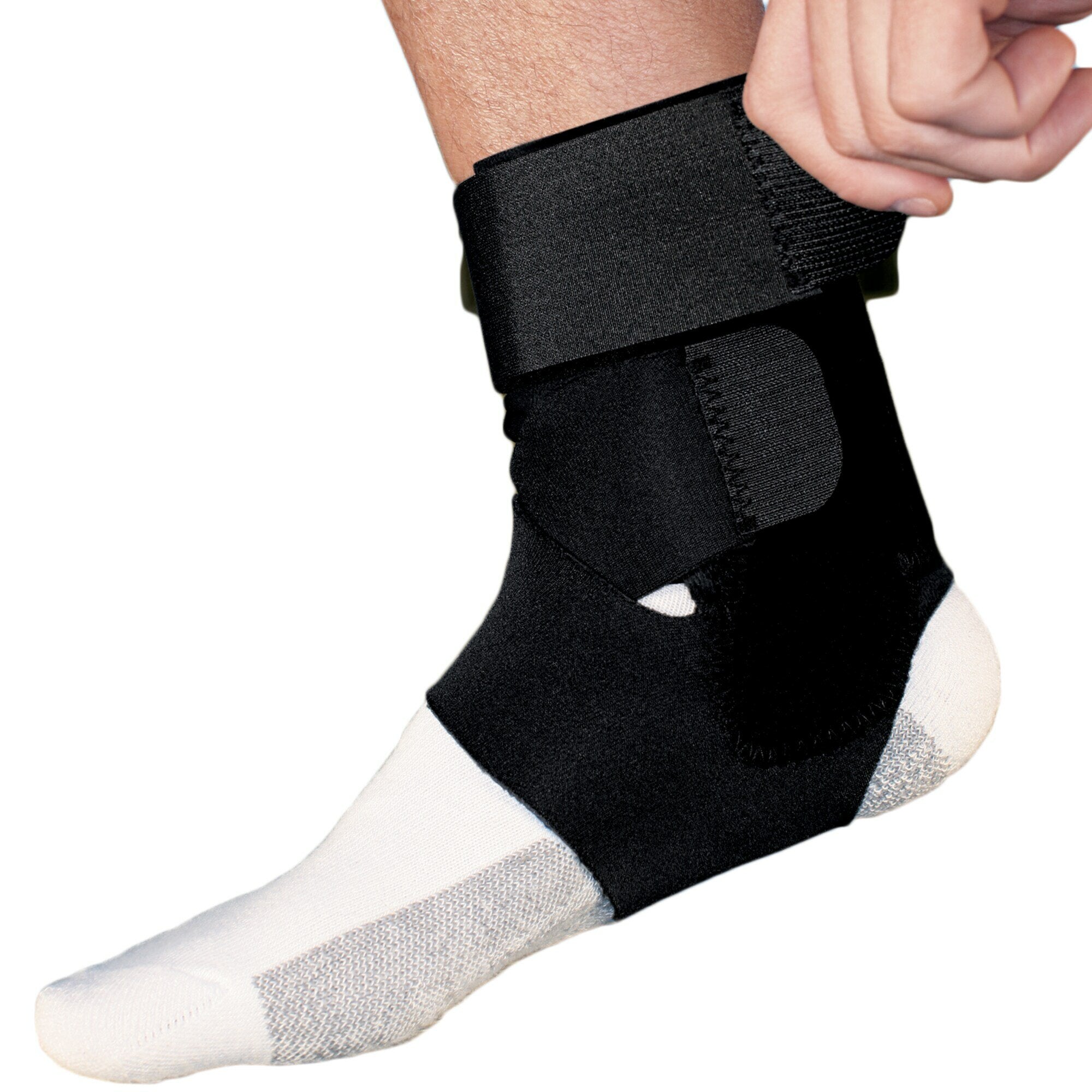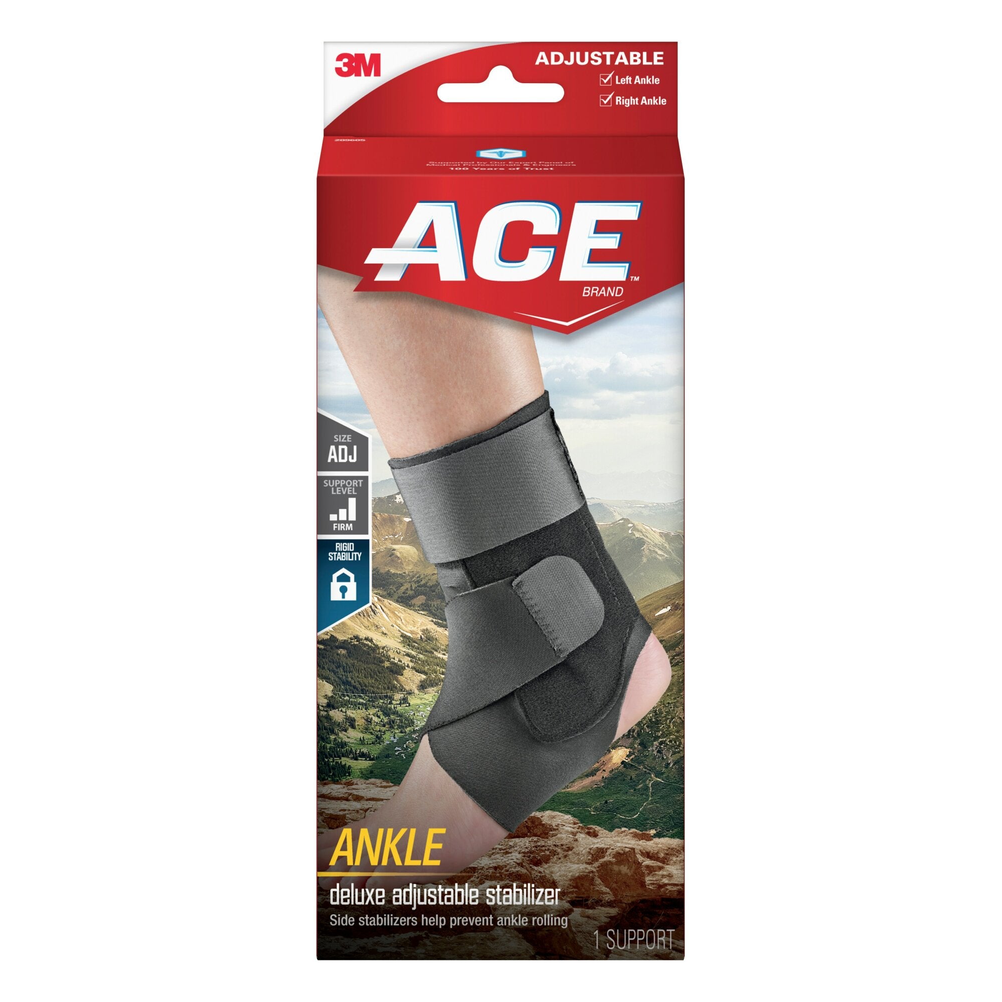 The ACE Brand consists of outstanding elastic bandages, braces, supports, and cold & hot therapy products to help you maintain your healthy active lifestyle.Sometimes, all you need to stay in the game is a bit of support, and that’s just what the ACE™ Brand Deluxe Ankle Stabilizer gives you. Built tough with reinforced stabilizers, this durable brace offers the support and protection you need to participate in your favorite sports. The three strap system easily adjusts to match your activity, and breathable materials allow airflow. When you’re on the track, court or field, take two steps forward with the ACE™ Brand Deluxe Ankle Stabilizer.